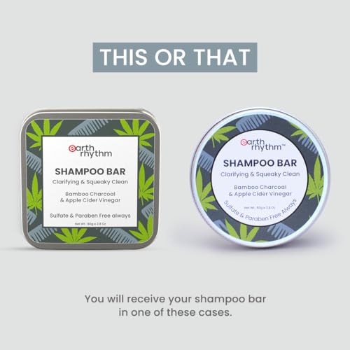 Earth Rhythm Charcoal Shampoo Bar | Clarify scalp, Strengthen Roots, Revitalise Hair | Sulphate & Paraben Free, Plastic Free, Tin Packaging - 80g
