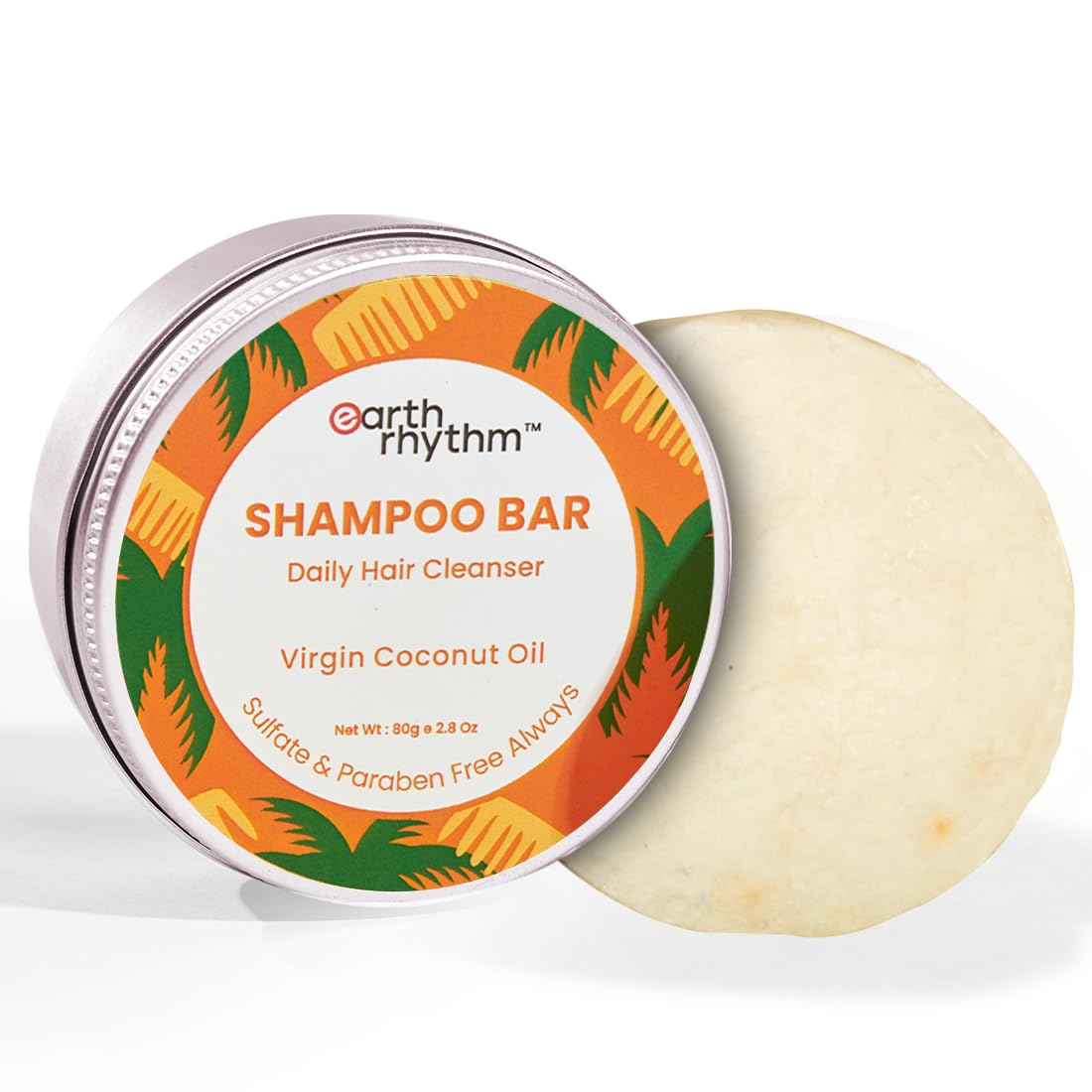 Earth Rhythm 100% Virgin Coconut Shampoo Bar Restores Shine, Deeply Nourishes Hair, Stimulates Hair Growth, Sulphate & Paraben Free, Men & Women - 80g