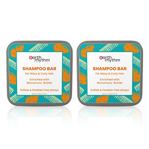 Earth Rhythm Murumuru Butter Shampoo Bar for Curly & Wavy Hair, 100% Biodegradable, Plastic-free Packaging, 80 GM (Pack of 2)