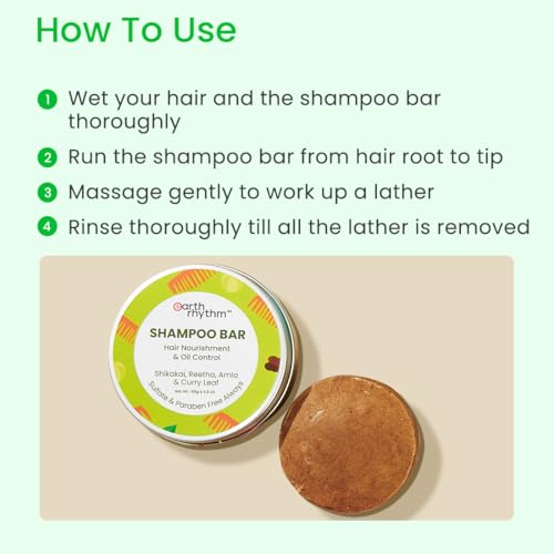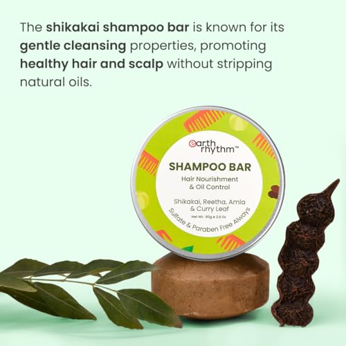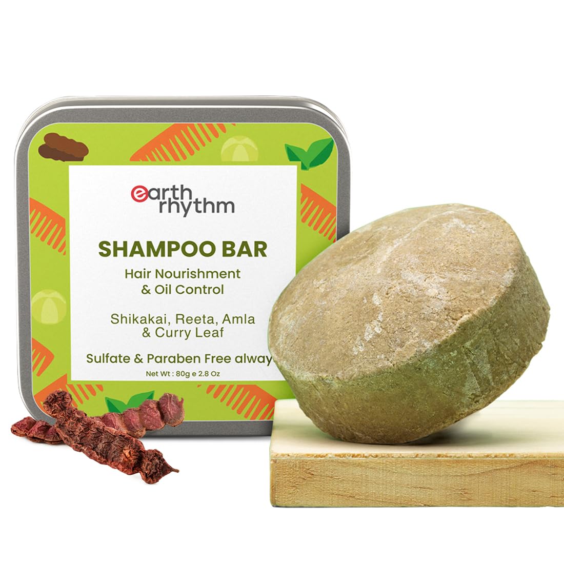Earth Rhythm Shikakai Shampoo Bar for Hairfall | Contains Shikakai, Curry Leaf, Reeta & Amla Extracts | Men & Women | Sulphate & Paraben Free (Tin Packaging) - 80gm