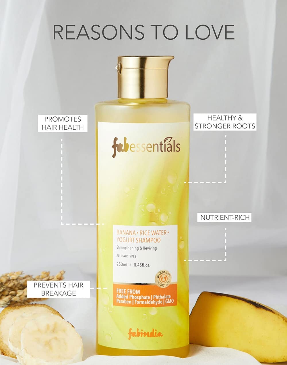 fabessentials Banana Rice Water Yogurt Shampoo is a nutrient-rich superfood rich shampoo for all hair types that harnesses the power of antioxidant-rich fruits & extracts to support healthy looking hair and scalp.