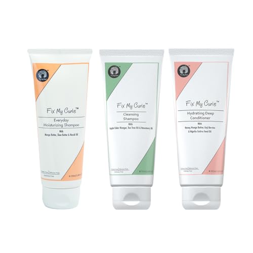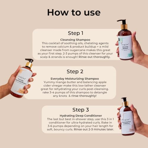 Fix My Curls Wash Day Trio | Cleansing & Moisturizing Shampoo, Hydrating Deep Conditioner | Silicone & Sulphate Free | For Curly, Wavy Hair| 100ml each