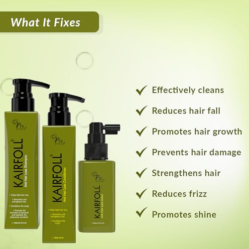 Fixderma Kairfoll Hair Care Kit | Anti Hair Loss Shampoo 200ml, Anti Hair Loss Conditioner 200gm & Anti Hair Loss Lotion 100ml | Controls Hair Fall & Promotes Hair Growth | Biotin for Hair Growth