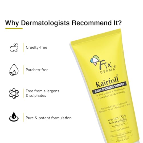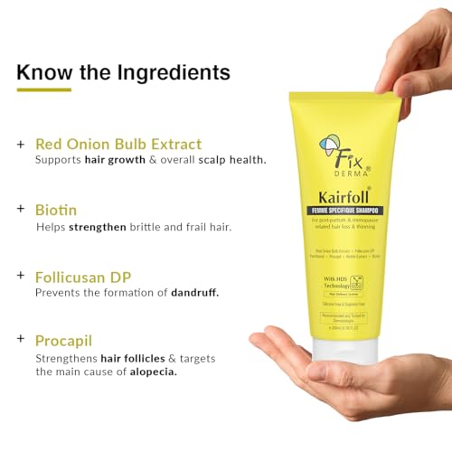 Fixderma Kairfoll Red Onion Shampoo with Castor Oil for Hair Growth | Femme Specifique Shampoo for PostPartum & Menopause| Biotin Shampoo | Shampoo for Women| Sulphate and Paraben free Shampoo - 200ml