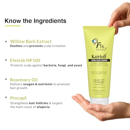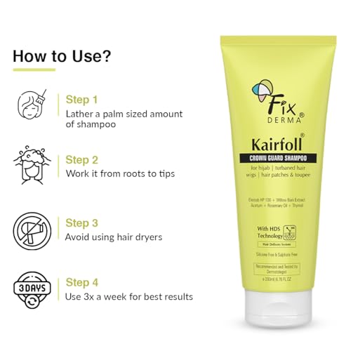 FIXDERMA Kairfoll Rosemary Oil Shampoo For Hair Growth|Crown Guard Shampoo For Hijab,Turbaned Hair&Wigs|Hair Patches&Toupee|Shampoo For Women&Men|Sulphate And Paraben Free Shampoo - 200 Ml
