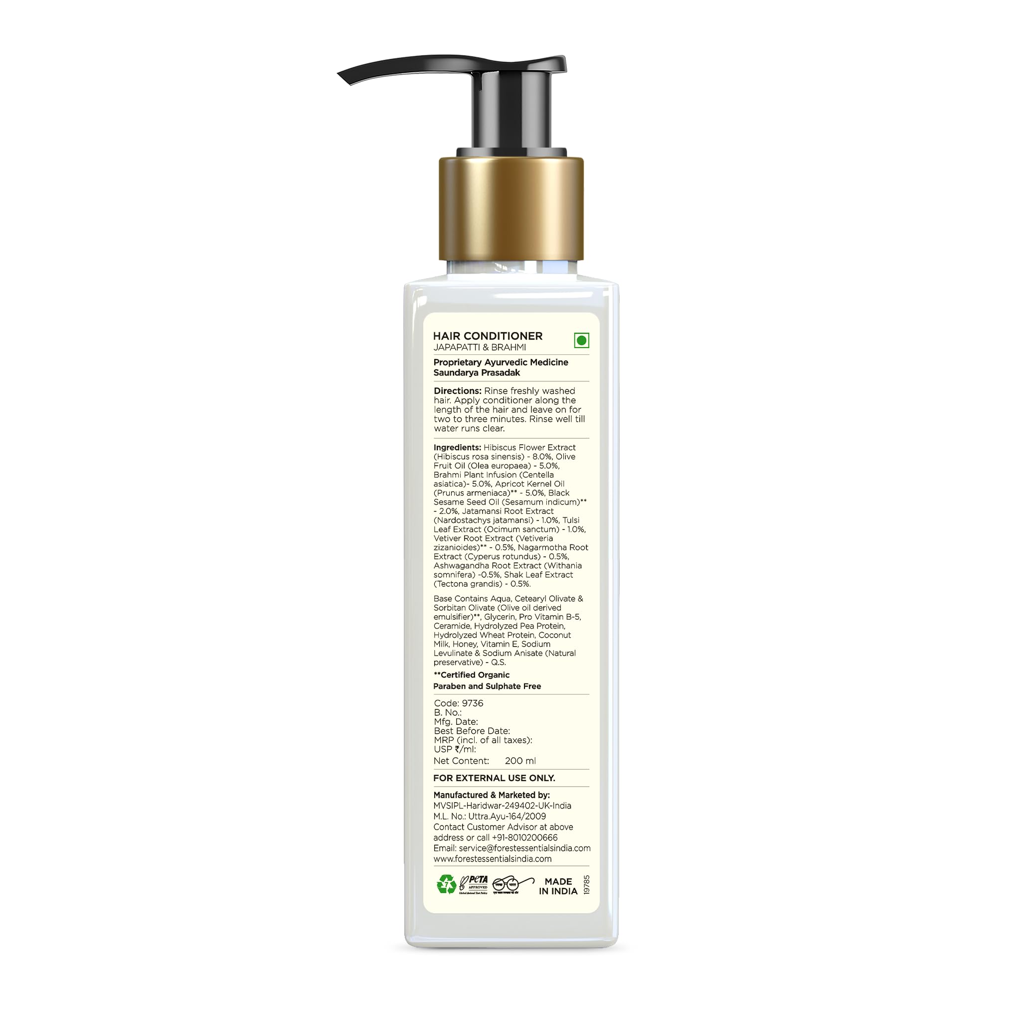 Experience the nourishing power of nature with Forest Essentials' Hair Conditioner infused with organic Brahmi and Japapatti. This unisex conditioner is perfect for all hair types especially dry damaged or chemically treated hair. Its liquid formula packaged in a 200ml bottle is easy to apply and rinse. Enriched with Pro Vitamin B-5 Ceramides Hydrolyzed Wheat Protein Hibiscus Flower and Brahmi it moisturizes and conditions your hair reducing split ends. With a light pleasant coconut scent it's free from harsh chemicals and artificial colors. After shampooing apply a small amount to damp hair massage in leave for a few minutes and then rinse out.