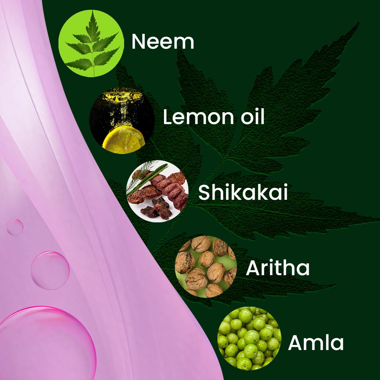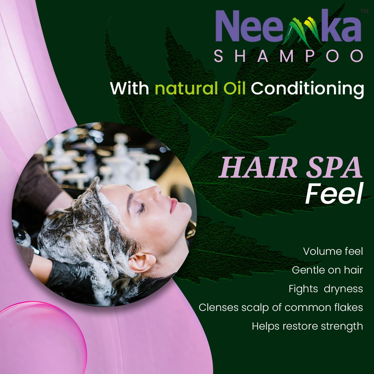 Natural Neem Power Infused with neem extracts known for antibacterial and antifungal properties to help reduce dandruff and soothe scalp irritation.