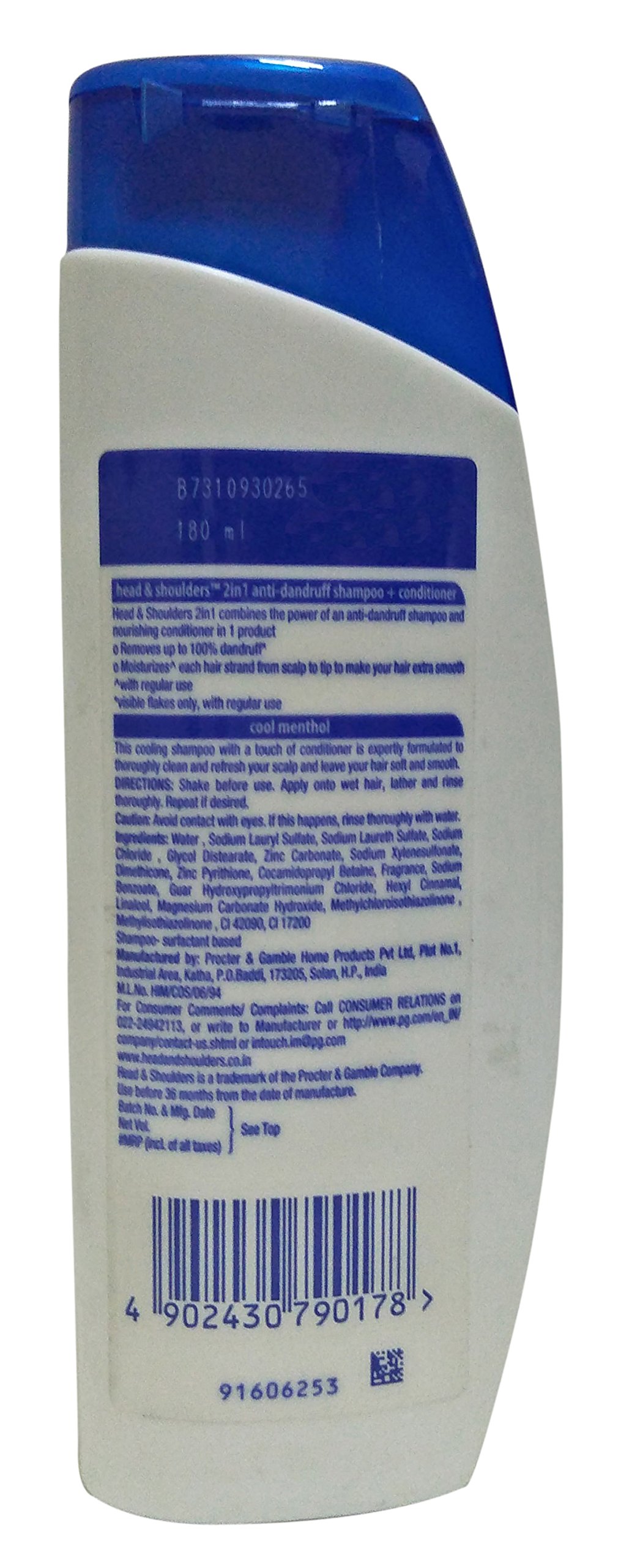 Specially formulated to have all the dandruff fighting power you expect from a Head & Shoulders product Head & Shoulders Cool Menthol 2-in-1 Shampoo + Conditioner combines the benefits of both shampoo and conditioner in one bottle. It leaves your hair and scalp upto 100% dandruff free and surprisingly smooth. This shampoo has an anti-dandruff formula that leaves a protective shield on your scalp to keep you upto 100% dandruff free. The tingly shot of menthol in this shampoo will leave you feeling revitalized and fresh.