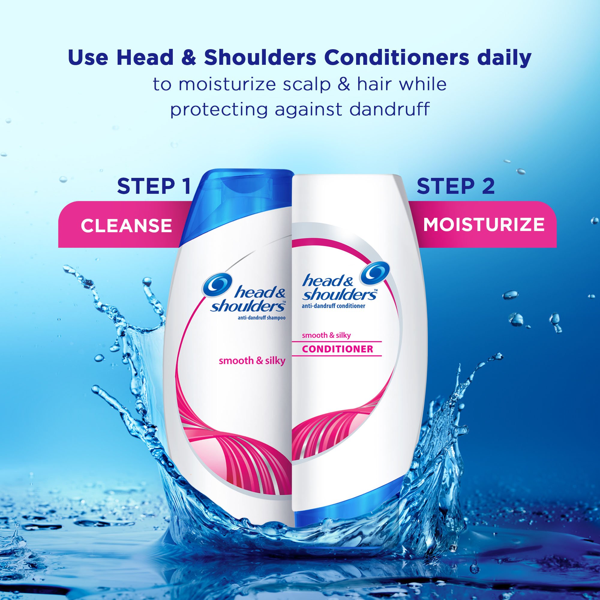 Go from dry and frizzy hair to smooth and silky hair in just one wash. Head & Shoulders Smooth & Silky Anti-Dandruff Shampoo is formulated with added moisturizers to cleanse and re dry frizzy hair and leave you with dandruff free hair*. Go ahead run your hands through your hair again. (*visible flakes only with regular use) - 24 hour frizz control for smooth beautiful-looking hair - Gentle pH balanced formula for everyday use even on color treated hair