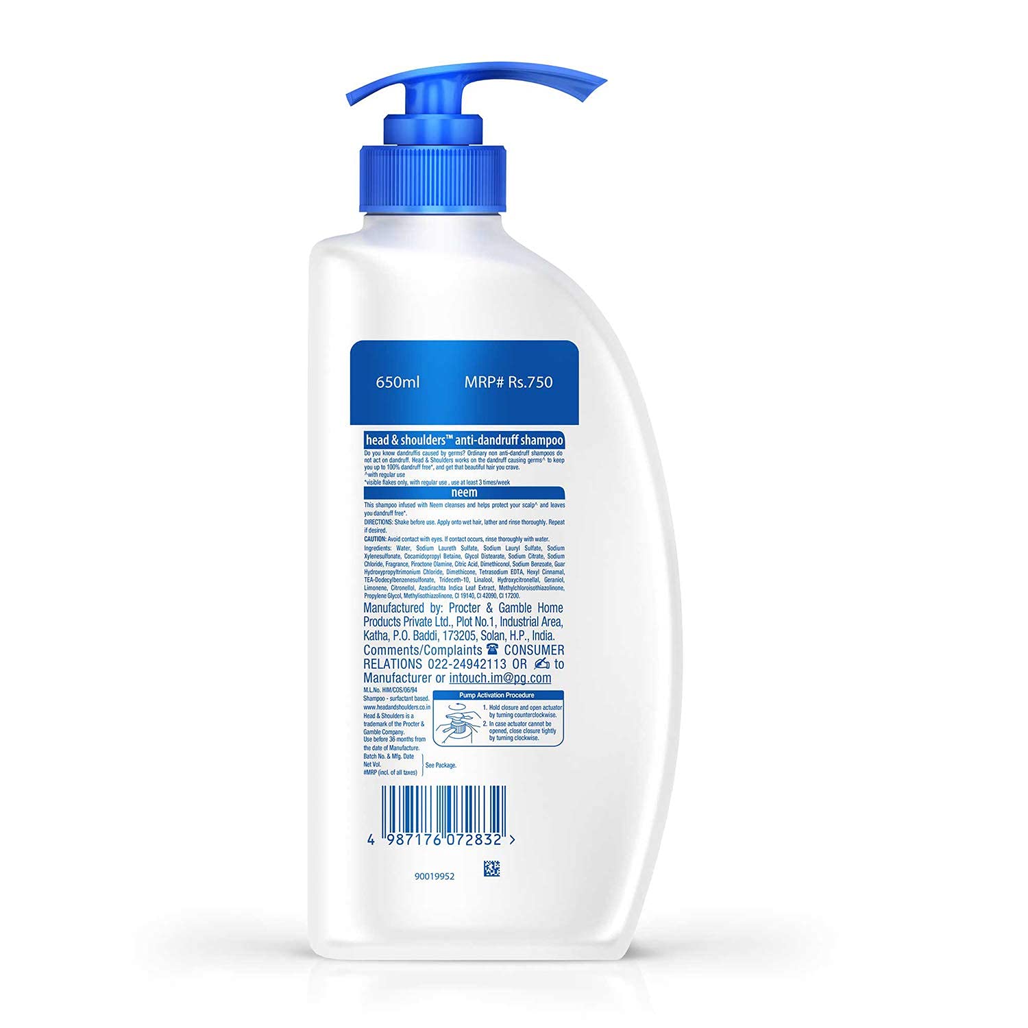 Enjoy up to 100% protection from dandruff with the new Head & Shoulders Neem. It helps clean & protect your scalp from dandruff and prevents recurring dandruff. Usage â Step 1- Shake well before use. Step 2- Wet hair gently massage onto your scalp and work through the tips of your hair. Step 3- Rinse and repeat if desired.