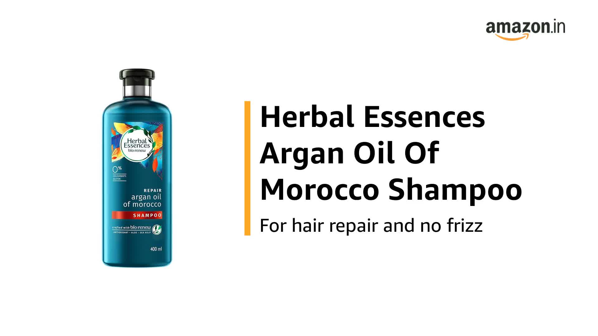 Repair damaged hair with Herbal Essences bio:renew ARGAN OIL OF MOROCCO SHAMPOO to leave it smoother and softer with every wash.Crafted with bio:renew our signature blend of essential antioxidants aloe and sea kelp ARGAN OIL OF MOROCCO SHAMPOO will leave your hair shining brighter feeling repaired and having freedom from frizz to bring it back to life in just 21 days. Free of parabens gluten and colorants from the first pop of the cap it will take you on a multi-layered scent experience to the warm sands of Morocco. Immerse yourself in the scent of creamy vanilla followed by a burst of fizzy citrus and lingering exotic spices.