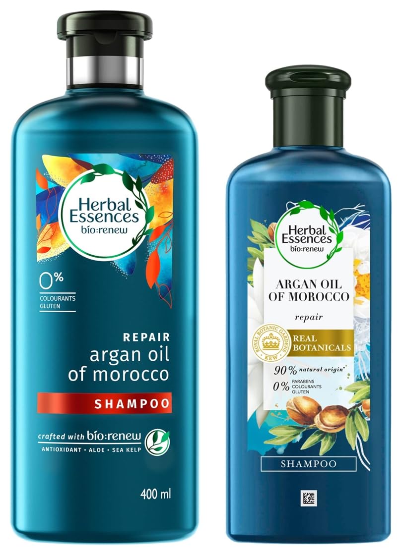 Herbal Essences bio:renew Argan Oil of Morocco SHAMPOO, 400ml & Herbal Essences Argan Oil of Morocco SHAMPOO- For Hair Repair and No Frizz- No Paraben, No Colorants, 240ML