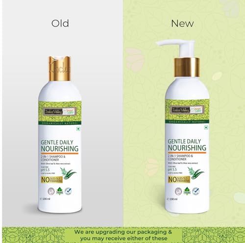 Indus Valley Organic Gentle Daily Nourishing 2-in-1 Shampoo and Conditioner for Dry Scalp, Stimulates Hair Growth, Deep Nourished Shiny Hairs Shampoo (200 ml, Pack of 1)
