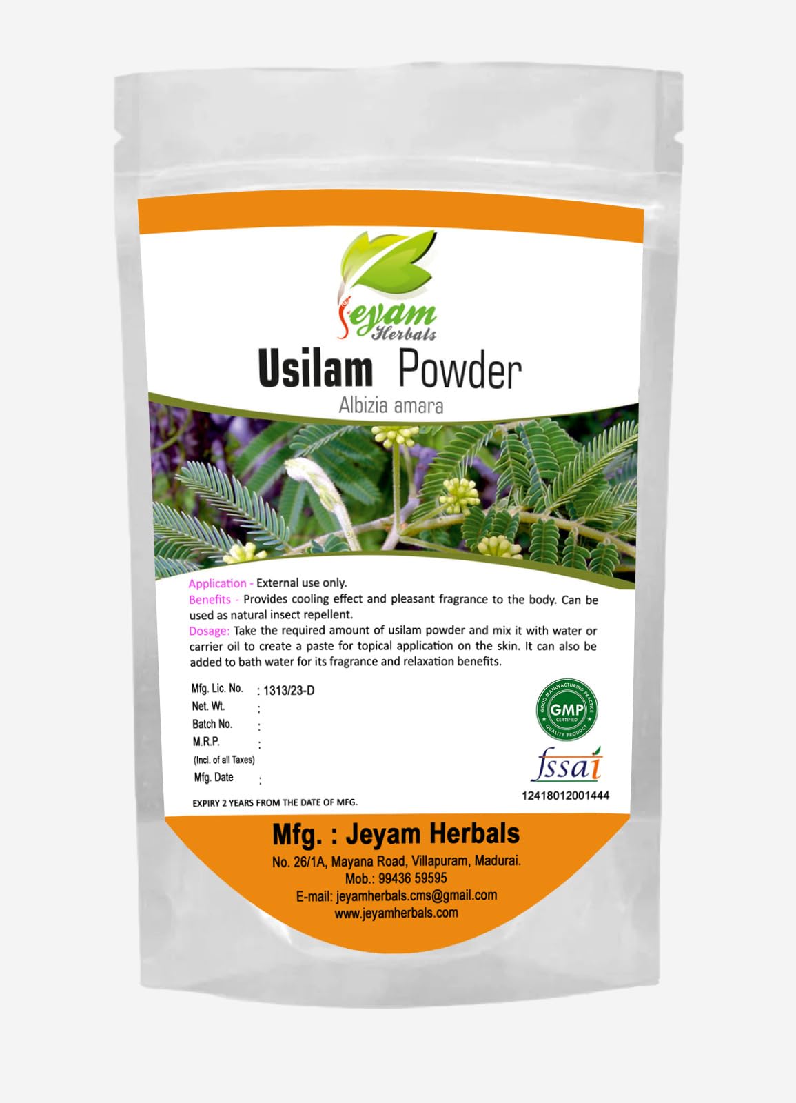 Usilam powder also known as "Arappu" in Tamil is a traditional herbal powder widely used for external applications especially in South India. It is derived from the leaves of the Albizia amara tree which are sun-dried and finely ground into a soft powder. This herbal product is an eco-friendly chemical-free alternative to commercial shampoos and soaps. Arappu has been used for centuries as a natural hair cleanser and conditioner. When mixed with water it forms a smooth paste that can be applied to the scalp and hair. The paste lathers naturally effectively removing dirt excess oil and impurities while leaving the hair soft shiny and well-nourished. It also helps in cooling the scalp relieving heat-related issues and preventing dandruff and hair loss.