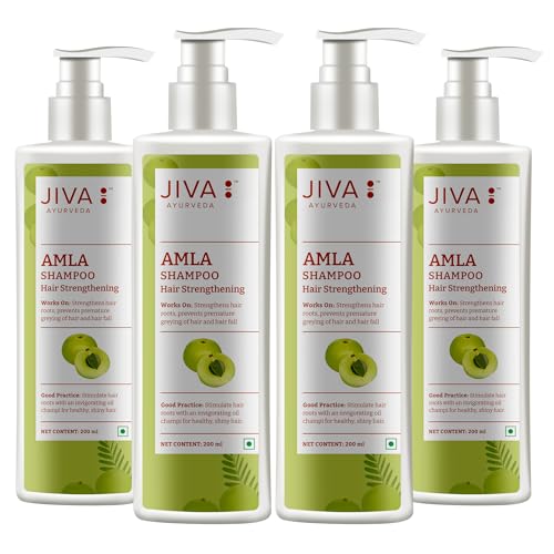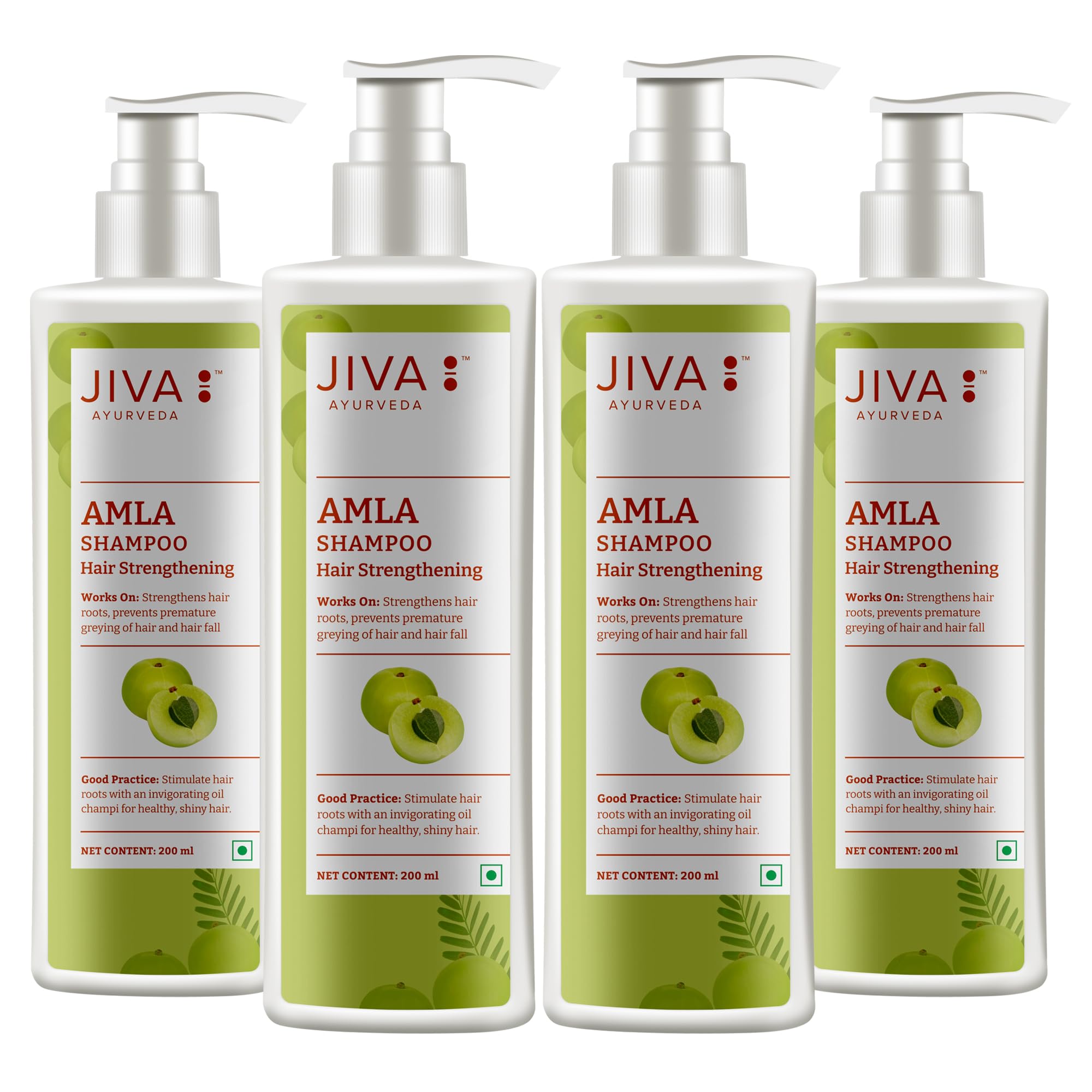 Jiva Amla Shampoo 200ml | 100% Pure & Natural | Cleanses Scalp & Strengthens Hair | Prevents Hair Fall, Dandruff, & Premature Graying | Balances Pitta Dosha (Pack of 4)