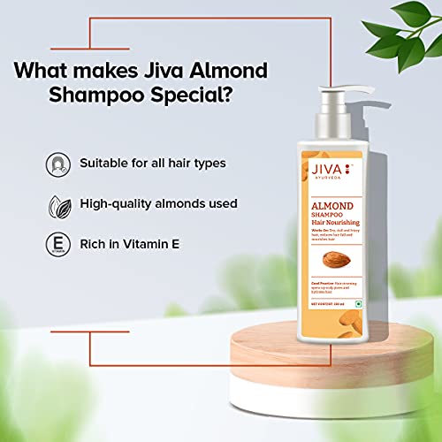 Jiva Almond Shampoo is the perfect blend of herbs that nourishes the roots of hair. Almond included in the right balance pacifies vata dosha. We have some special ingredients too to make your hair silken smooth and lustrous. The regular use of almond shampoo also nourishes the nervous system and helps to strengthen the centers of brain connected with various senses. Jiva Almond shampoo is specifically beneficial for thin falling hair and is very beneficial for hair growth.