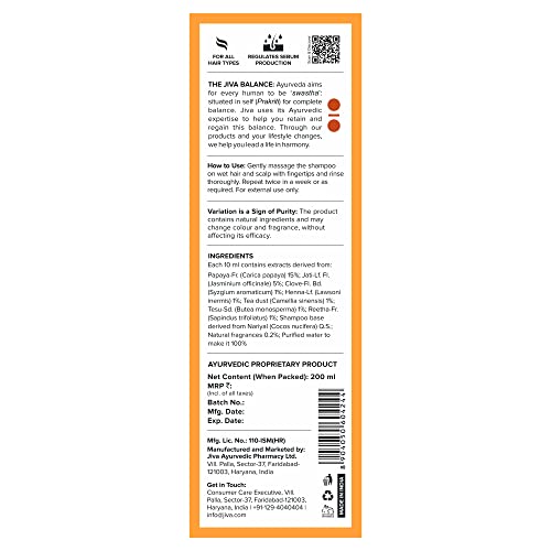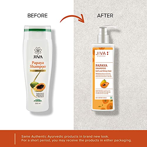 Jiva Papaya Shampoo - 200 ml - Pack of 1 - For All Hair Types, Regulates Sebum Production, Nourishes Hair Roots For Long Smooth Hair
