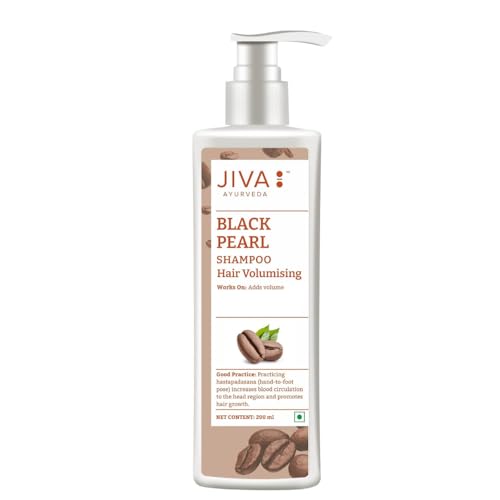 BLEND OF 12 POTENT HERBS: Jiva Black Pearl Shampoo is a blend of natural hair volumising herbs like Haritaki Vidang Bakuchi Saunf Kalonji Mehandi Anaar Mayaphal Khadira Vibhitaki Bhumi Amla Coffee and Black Walnut. This potent mix of natural herbs helps m