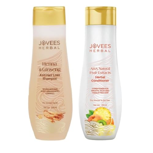 Jovees Herbal Henna & Ginseng Anti Hair Loss Shampoo | For Hair Growth 300ml & AHA Natural Fruit Extracts Herbal Conditioner | Gives Smooth, Silky And Tangle Free Hair 300ml (Pack of 2)