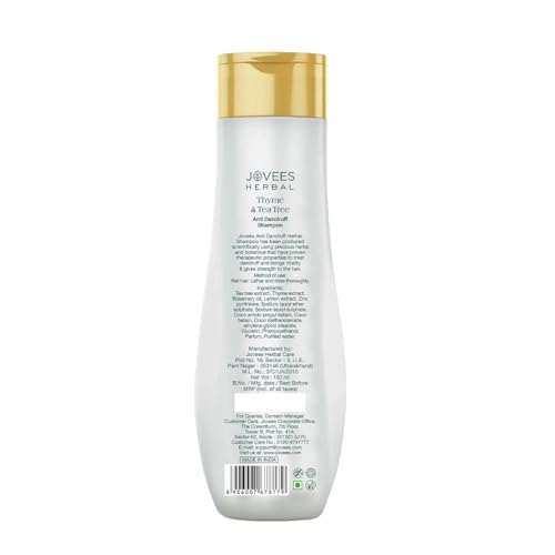 Jovees Herbal Thyme & Tea Tree Anti Dandruff Shampoo | With Tea Tree, Thyme & Lemon Extract | For All Hair Type | Prevents Dandruff & Dry Scalp 150ML