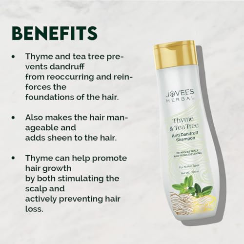 Jovees Herbal Thyme & Tea Tree Anti Dandruff Shampoo | With Tea Tree, Thyme & Lemon Extract | For All Hair Type | Prevents Dandruff & Dry Scalp- 300ml