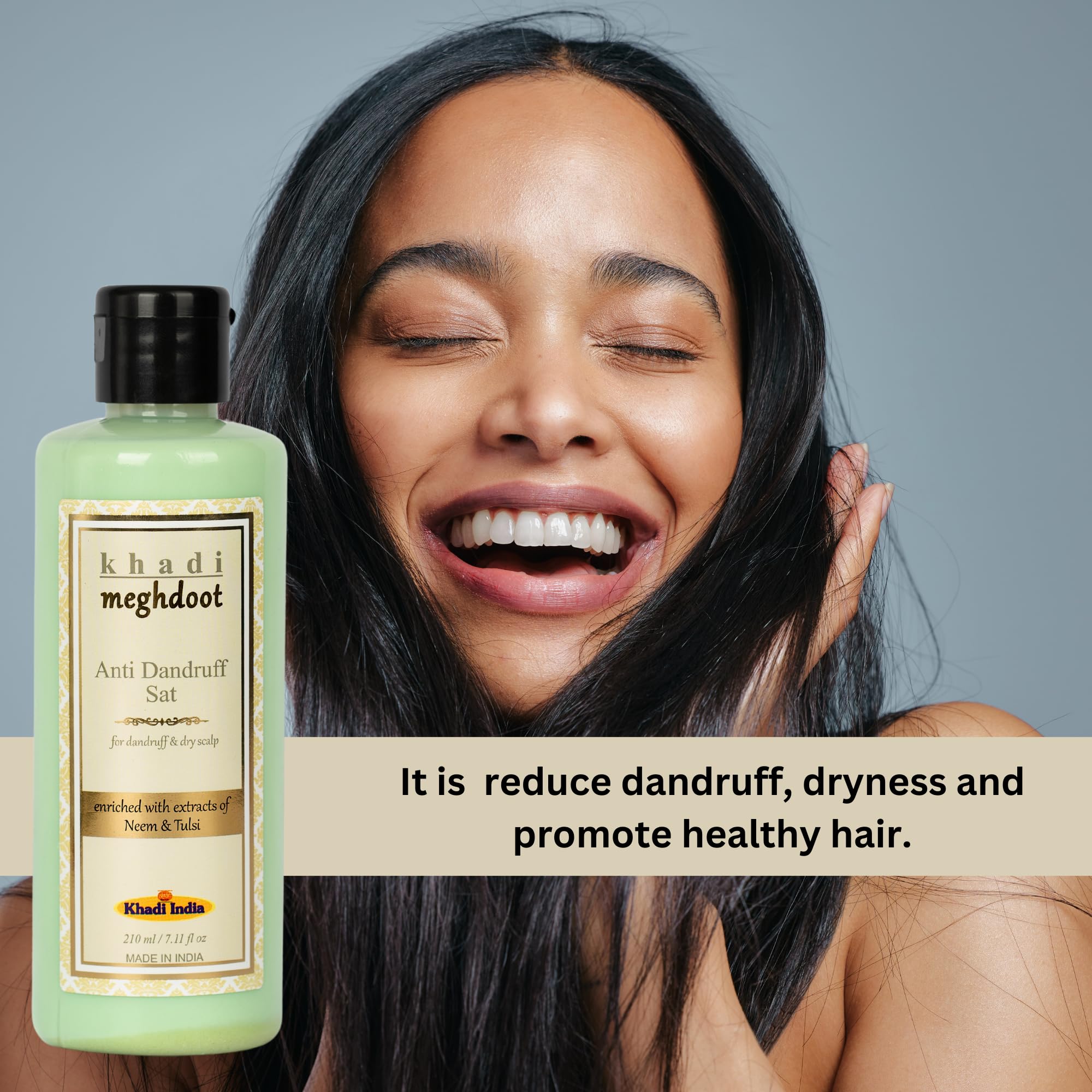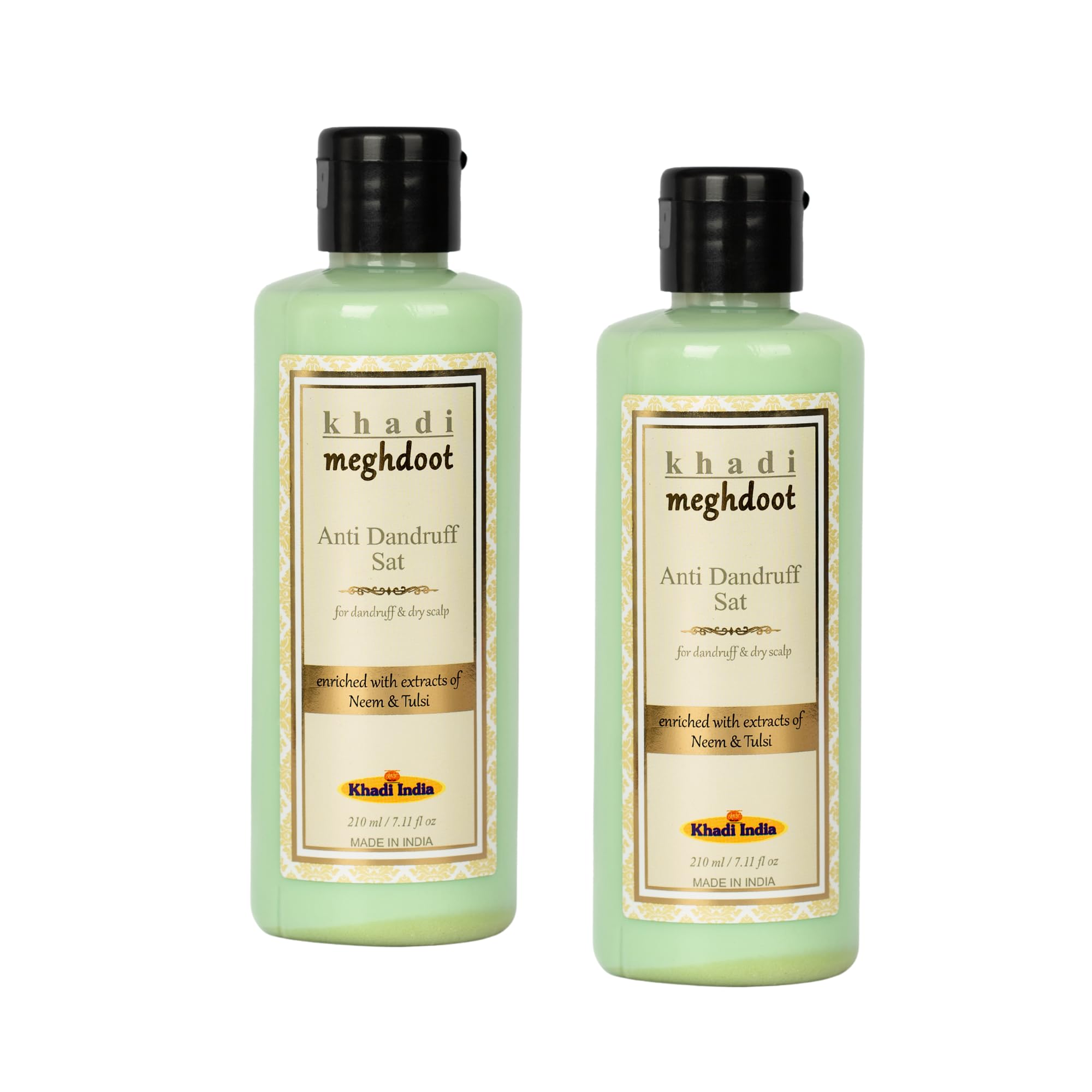 Khadi Meghdoot Anti Dandruff Ayurvedic Shampoo Enriched With Extracts of Tulsi and Neem for Healthy Scalp Free from Lice Dandruff Control Dry Hair Men and Women 210ml Each Pack of 2