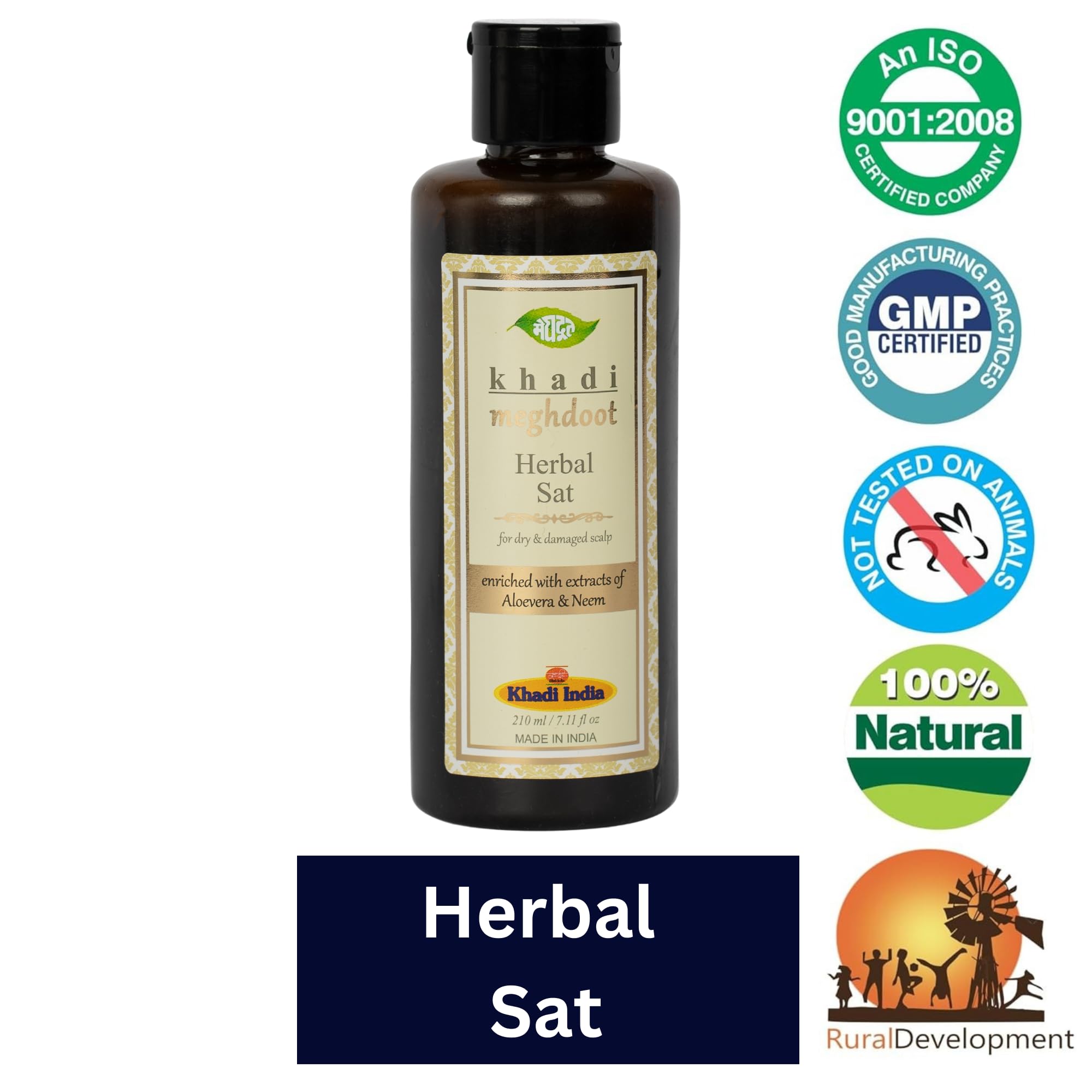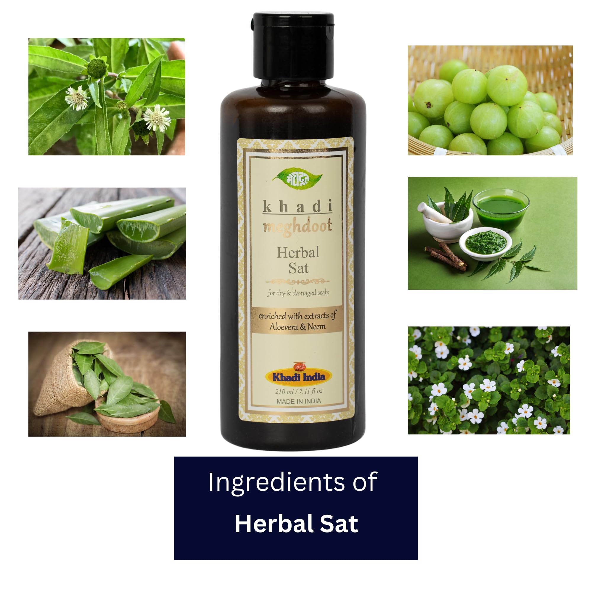 Khadi Meghdoot Ayurvedic Herbal Sat Shampoo Enriched With Extracts of Aloevera & Neem for Dry & Damage Scalp 210ml Each Pack of 2