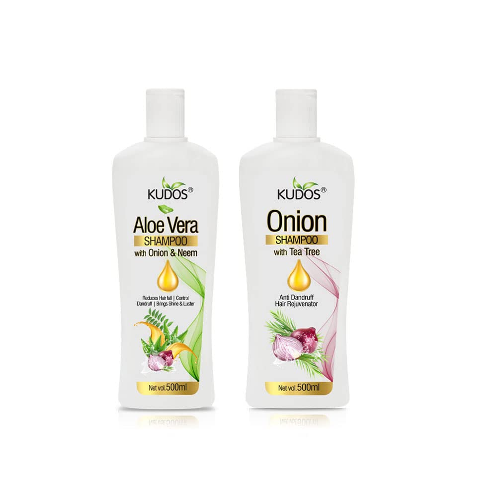 Introducing the Kudos Aloe Vera and Onion Shampoo - a dynamic duo designed to transform your hair care routine and leave your locks feeling revitalized and radiant. This pack includes two generously sized 500ml bottles ensuring you have an ample supply of these powerful formulations for a long-lasting hair care experience. Kudos Aloe Vera Shampoo: Enriched with the soothing and hydrating properties of Aloe Vera this shampoo provides a gentle yet effective cleanse for your hair. Aloe Vera is renowned for its ability to nourish and moisturize the scalp promoting a healthier environment for hair growth. This formula helps to restore natural shine leaving your hair feeling soft and manageable. Experience the refreshing sensation of Aloe Vera as it works its magic creating a spa-like experience with every wash. Kudos Onion Shampoo: Harness the power of nature with the Kudos Onion Shampoo. Packed with the goodness of onions this shampoo is specially formulated to address common hair concerns. Onions are known for their rich sulfur content which supports hair strength and reduces breakage. This shampoo helps to cleanse the scalp removing excess oil and impurities while nourishing the hair follicles. The result? Stronger healthier hair that looks and feels revitalized. Embrace the natural benefits of onions for a hair care routine that goes beyond the ordinary. Key Features: Hydration and Nourishment: Aloe Vera-infused formula hydrates and nourishes your hair leaving it feeling soft and rejuvenated. Strength and Vitality: Onion Shampoo strengthens hair and promotes vitality reducing breakage and improving overall hair health. Gentle Cleansing: Both shampoos provide a gentle yet effective cleanse removing impurities without stripping away essential oils. Refreshing Experience: Enjoy the refreshing and invigorating scents of Aloe Vera and Onion creating a spa-like experience in the comfort of your own shower.