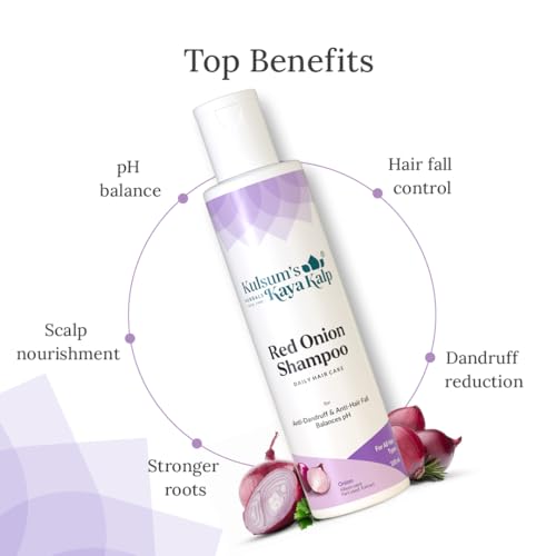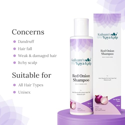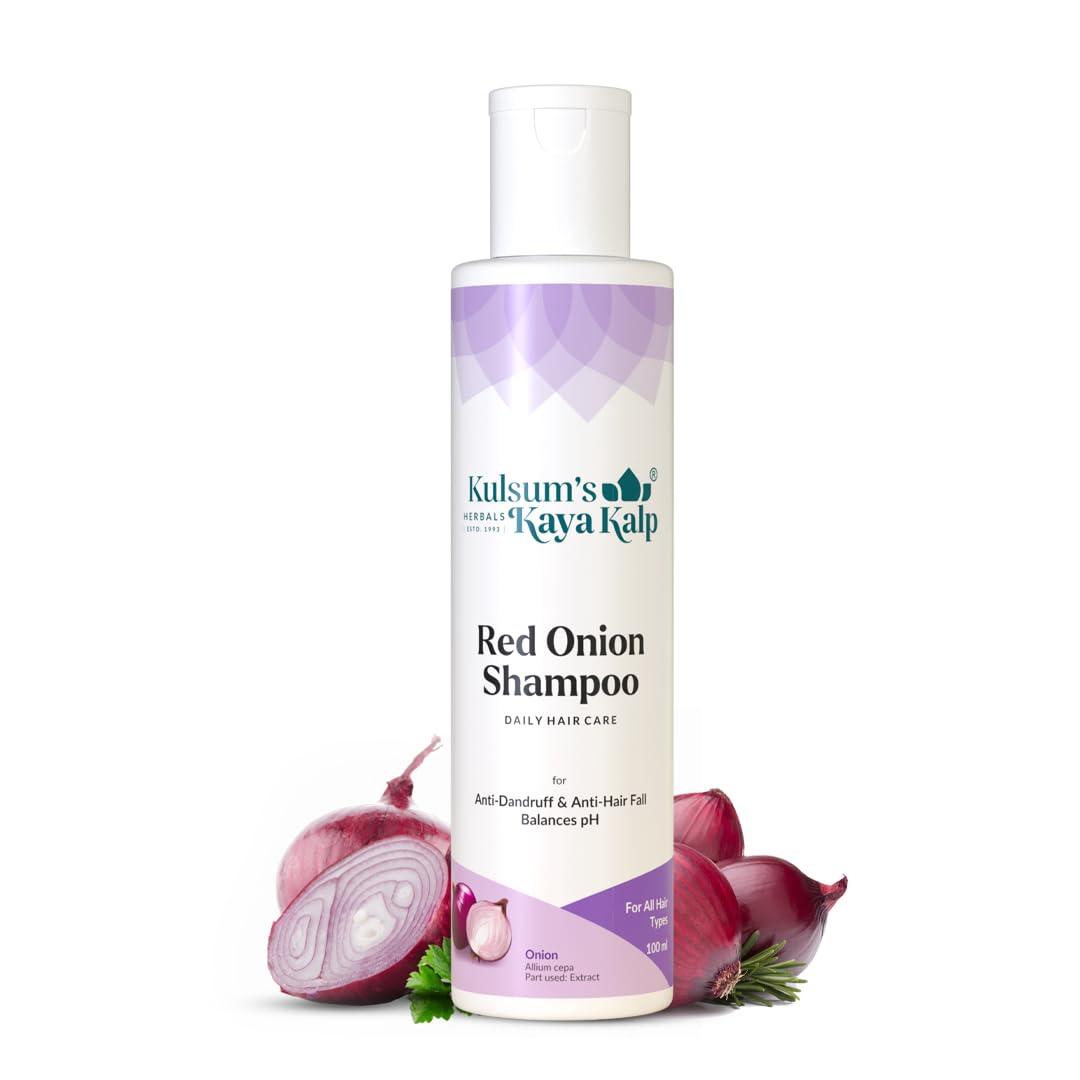 Kulsum's Kaya Kalp Herbals Red Onion Shampoo is enriched with onion amla and aloe vera. It is a suitable shampoo for all hair types and helps in hydrating nourishing and cleansing your scalp and hair leaving them soft smooth and lustrous. This shampoo is gentle on the scalp and hair and effectively removes dirt grease and product residues hence leaving your scalp and hair perfectly clean. It contains onion which helps manage hair thinning breakage & dandruff nourishes hair and protects them from free radical damage. Amla is rich in vitamins minerals and antioxidants which help condition your scalp and promote healthy hair growth & hair volume. Aloe vera is famous for its nourishing properties and smoothens the hair. Hence this shampoo helps give the right kind of nourishment to the roots and scalp which helps in stronger hair and rejuvenates dry & dull hair to soft hair. Kulsum's Kaya Kalp Herbals Red Onion Shampoo is all-natural cruelty-free and paraben-free.