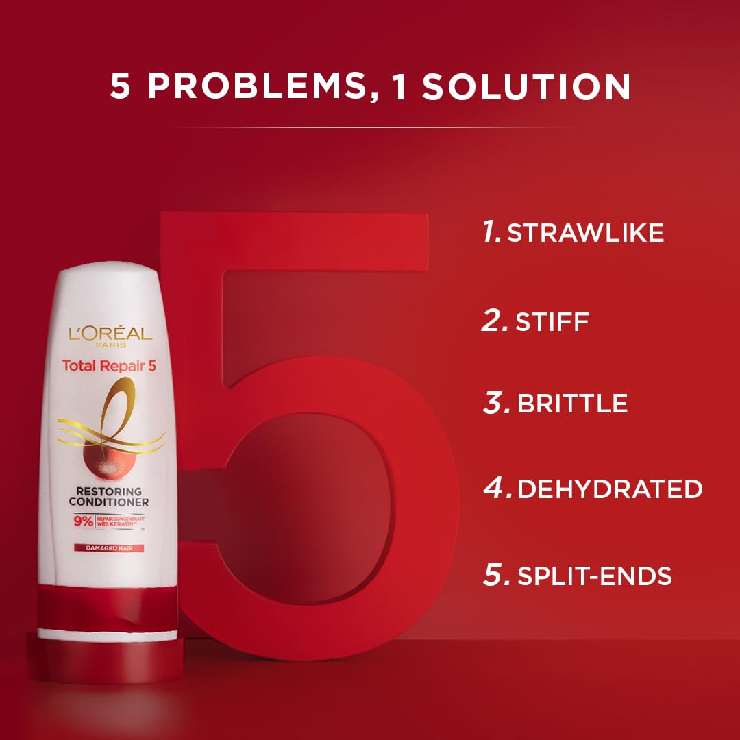 Total Repair 5 hair conditioner for damaged dry lifeless dull or weak hair Fights against the five visible signs of damaged hair: hair fall dryness roughness dullness and split ends