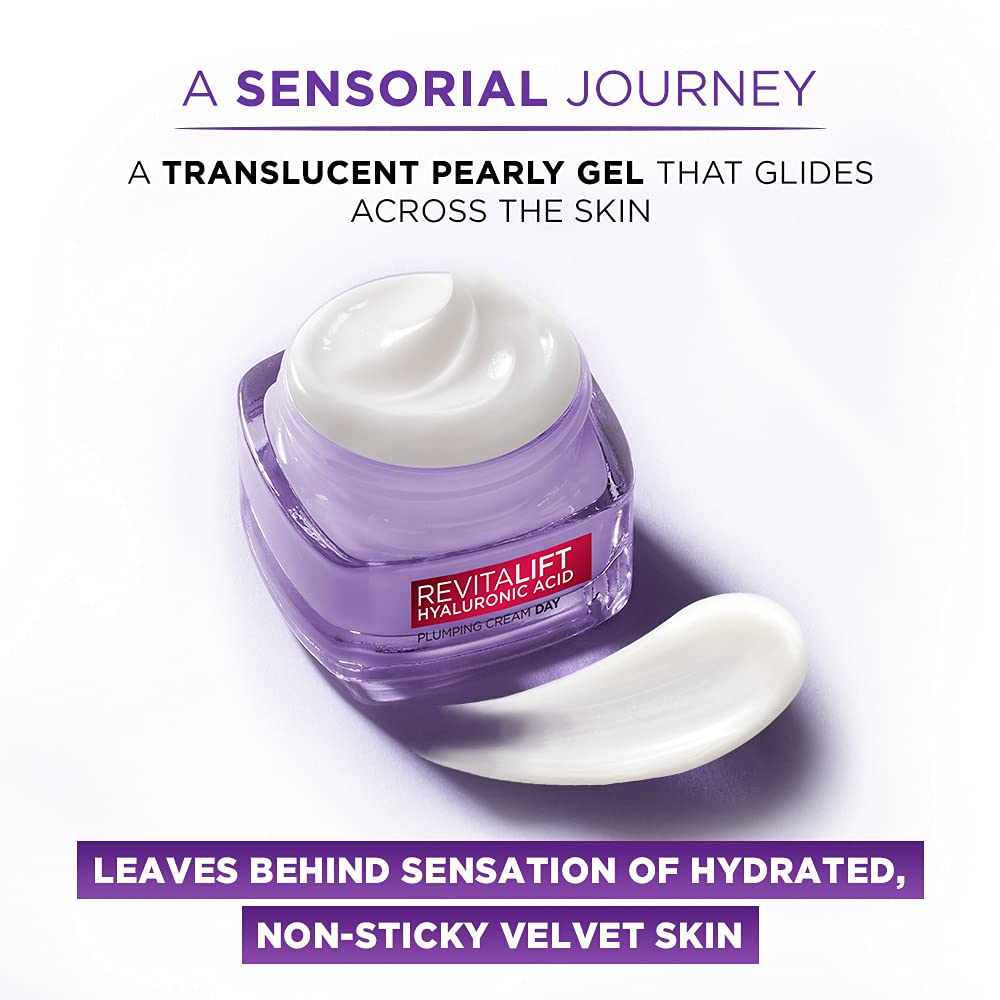 L'Oreal Paris Moisture Filling Shampoo With Hyaluronic Acid For Dry & Dehydrated Hair Adds Shine & Bounce Hyaluron Moisture 72H 340mlTired of dry dull and lifeless hair? Its time to hydrate your hair with intense moisture Try the all-new L'Oreal Paris Hyaluron Moisture shampoo that provides long-lasting hydration and re-plumps hair with ease. This 72H Moisture filling Shampoo instantly fills hair with moisture giving you shiny hair that’s full of life. Key Ingredient - Hyaluronic acid for hair which retains 1000 times its weight in water and is an essential ingredient to maintain the natural moisture barrier of your scalp and strands. This potent hydrating active weightlessly coats hair to keep it feeling hydrated for up to 72 hours and helps hair look visibly plumped bouncy and shiny. Now make the science of skincare a part of your hair care routine with Hyaluronic Acid. Usage – Apply on scalp and massage till lather forms. Rinse till completely clean. Follow this with Hyaluron Moisture 72H Moisture Sealing Conditioner and Hydra Filling Night CreamL'Oreal Paris Day Cream for Women Hydrates and Replumps For Radiant Skin Revitalift Hyaluronic Acid 15mlGet plump hydrated and radiant skin with the new L'Oreal Paris Revitalift Hyaluronic Acid Plumping Gel Cream. Formulated with the highest concentration of Hyaluronic Acid the hyaluronic acid cream is made of micro Hyaluronic Acid that penetrates deeper for long lasting & visible results. The gel formula of the L'Oreal day cream combats the loss of moisture from your skin giving your skin a youthful radiance as well reduces the appearance of fine lines. The lightweight gel day cream is non-sticky and non-oily it will glide across the skin leaving behind a sensation of hydrated velvet skin. How to use – Take a pea sized amount of the L'Oreal Paris Hyaluronic Acid Cream and dot it all over freshly cleansed face and neck. Gently spread and massage the anti-ageing day cream in circular motions till the face cream gets completely absorbed into the skin. For best results combine usage with dermatologist validated L'Oreal Paris Revitalift 1.5% Hyaluronic Acid Serum. Suitable and a safe day cream for dry skin normal skin combination skin & early ageing skin. *Amongst Loreal Paris Creams