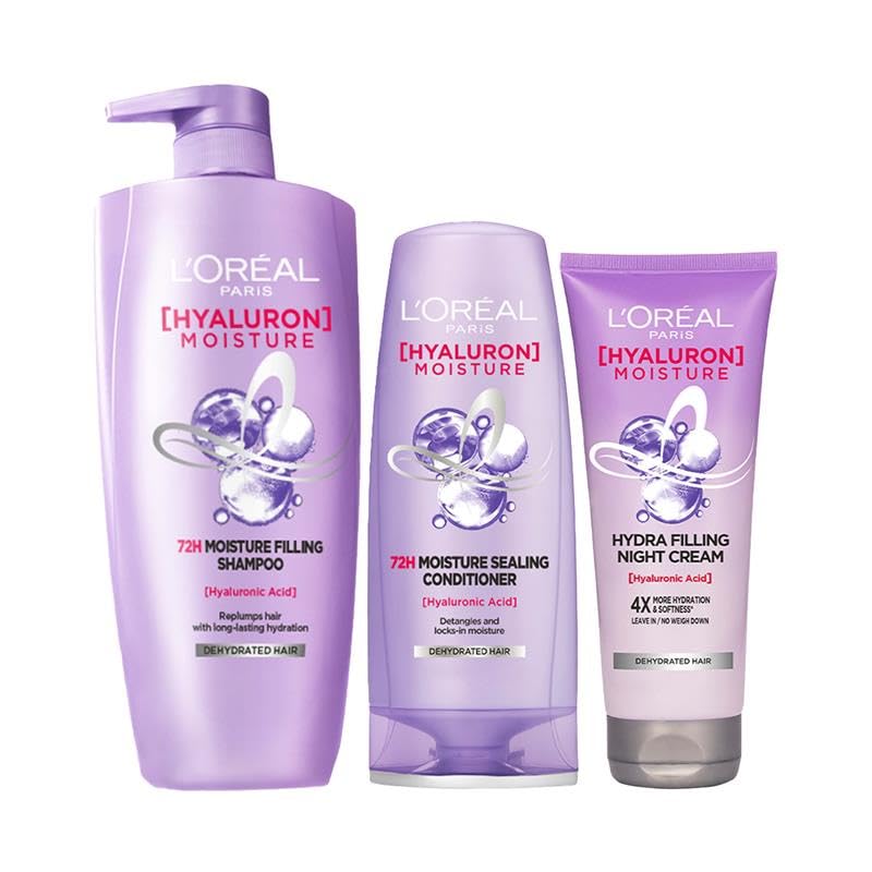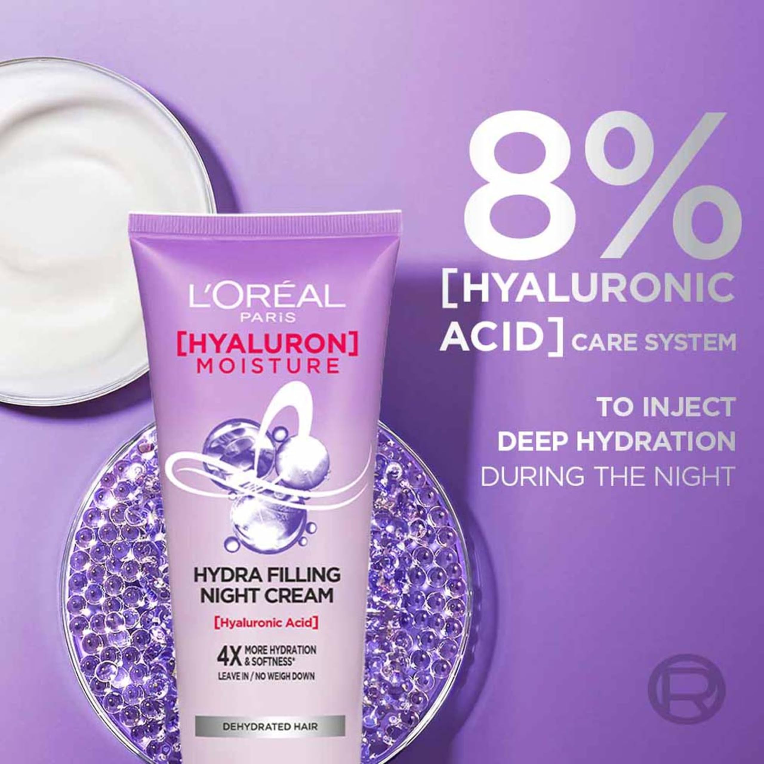 L'Oreal Paris Moisture Filling Shampoo With Hyaluronic Acid For Dry & Dehydrated Hair Hyaluron Moisture 72H 650ml & Moisture Sealing Conditioner 180ml & Filling Night Cream 180ml
