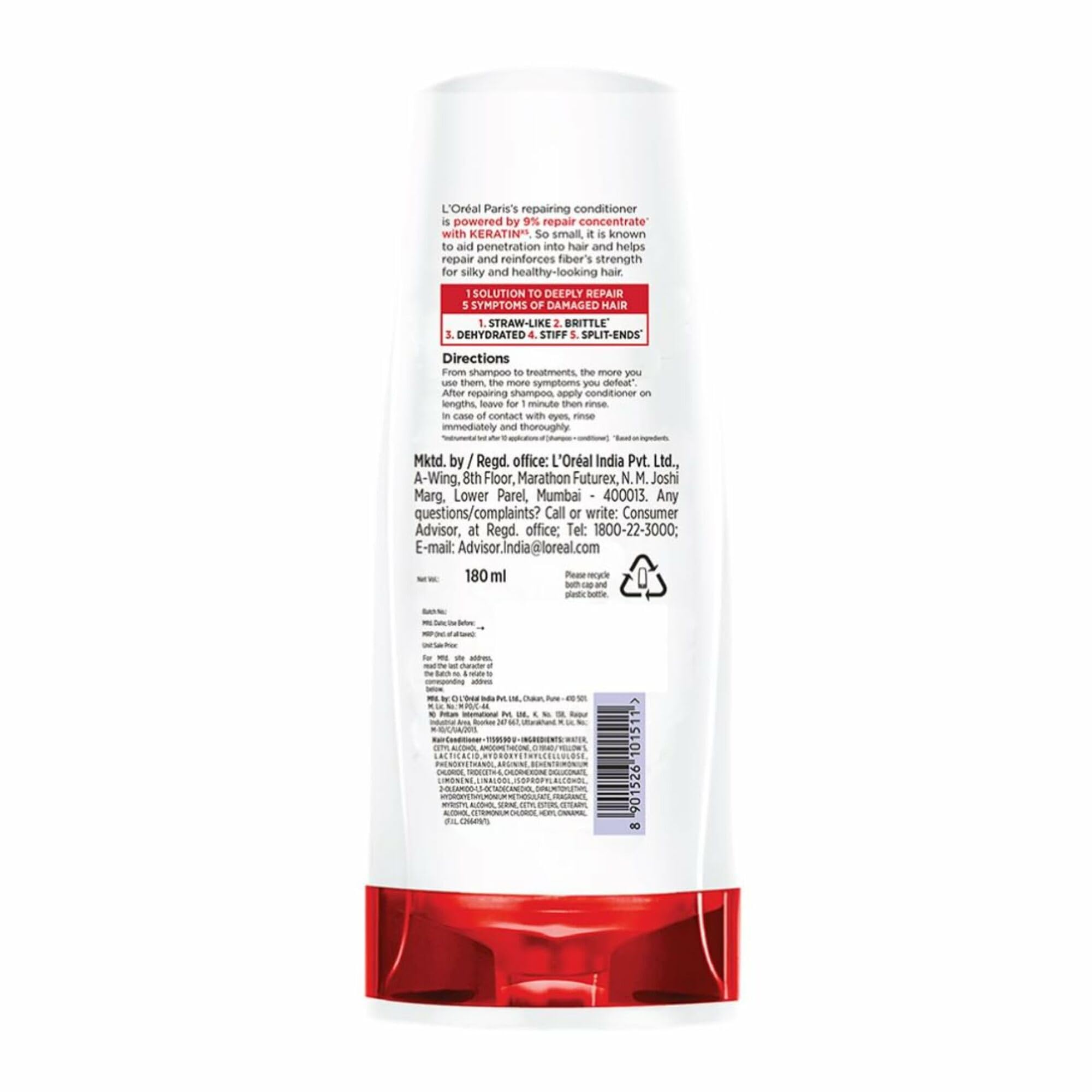 Design:Conditioner5 Problems.1 Solution. L'Oreal Paris Total Repair 5 Repairing conditioner helps fight against the five visible signs of damaged hair - Hair fall dryness roughness dullness and split ends without weighing it down. Damaged hair can lack the natural cement which keeps the hair strong and resilient. To ensure cohesion and strength the LOreal Laboratories have created Ceramide-Cement technology to replicate the hair natural cement targetting the 5 problems. Explore our best hair products to revive and repair damaged hair.