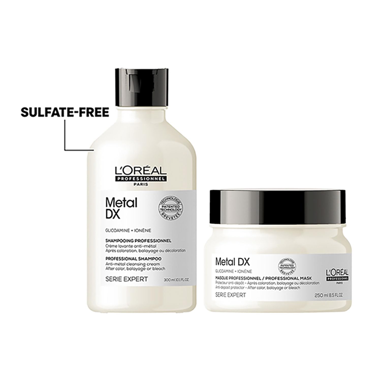 L'Oreal Professionnel Metal Dx Shampoo & Hair Mask Combo (300ml + 250gm) | Anti Metal & Sulfate Free Shampoo & Mask for Shinier Hair with Vitamino Travel-Size Mask 75ml