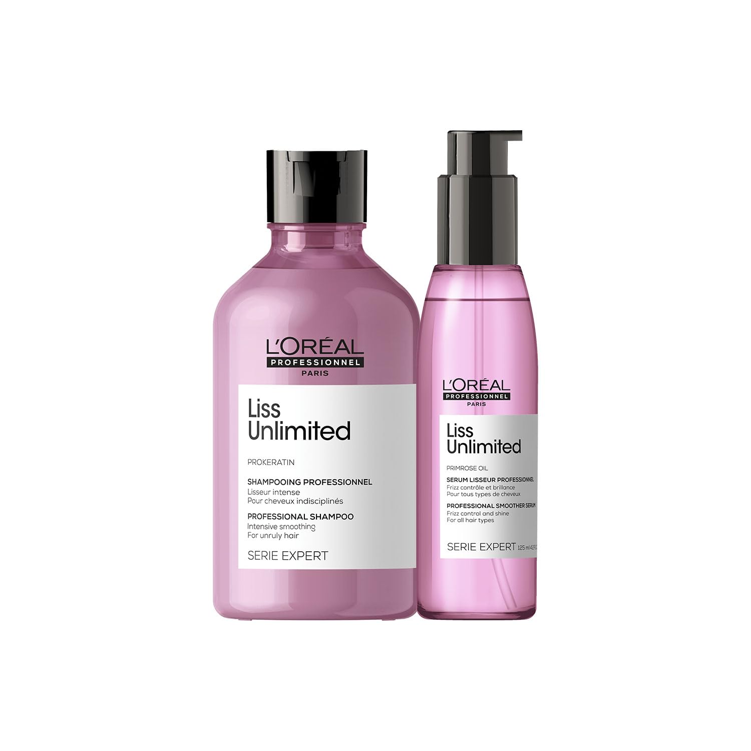 L'OREAL PROFESSIONNEL PARIS Serie Expert Liss Unlimited Blow Dry Serum 125Ml & Serie Expert Liss Unlimited Shampoo Controls Frizz Adds Shine With Prokeratin Complex