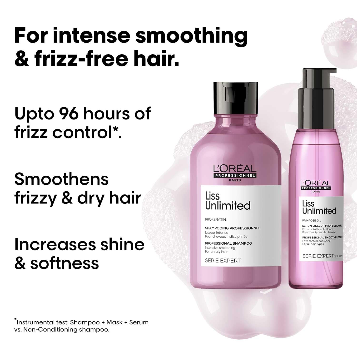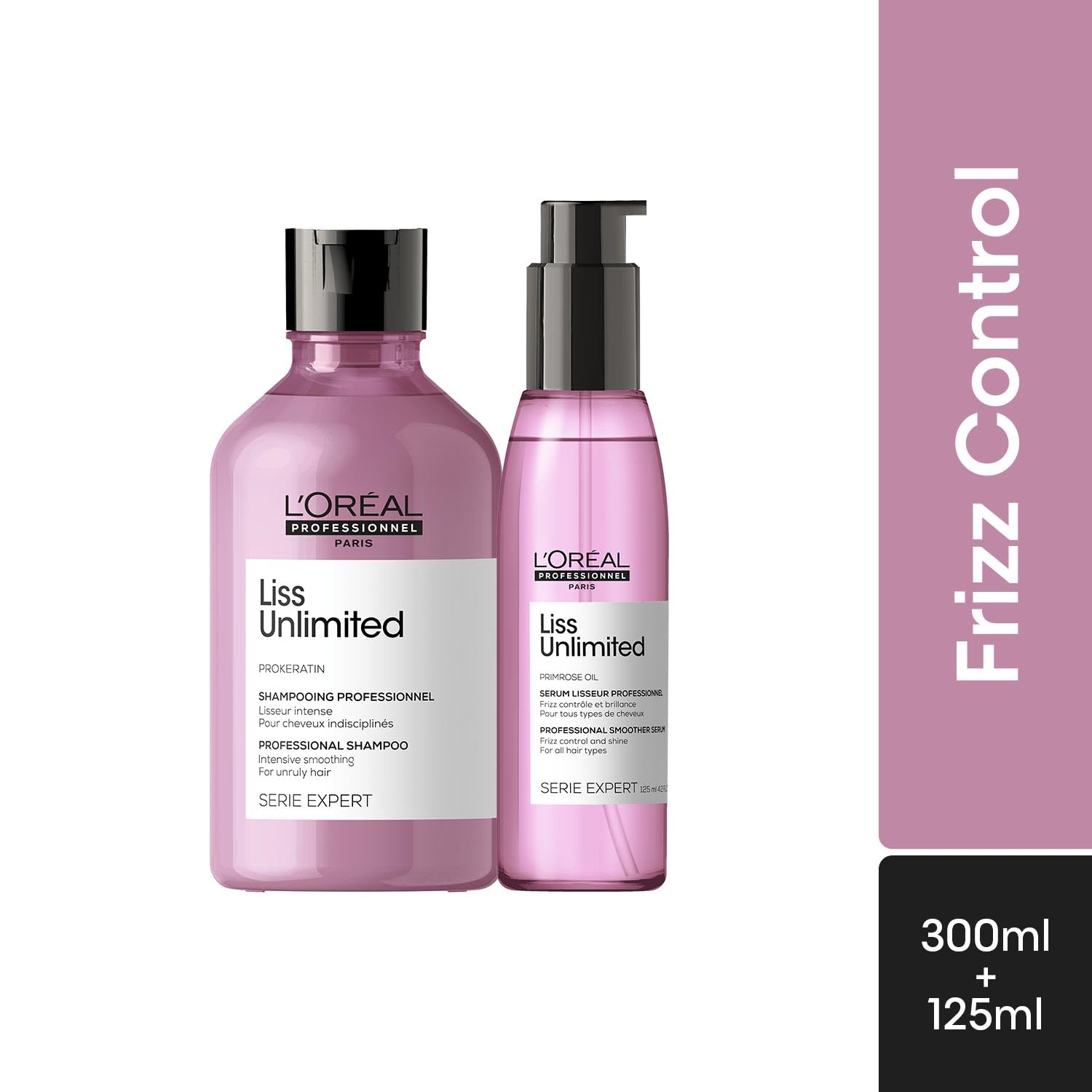 L'Oreal Professionnel Paris Serie Expert Liss Unlimited Blow Dry Serum 125Ml & Shampoo Controls Frizz Adds Shine With Prokeratin Complex
