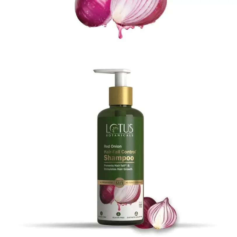 Lotus Botanicals Red Onion Hair Fall Control Shampoo 300ml with Red Onion Smooth Hair Conditioner 150g and Red Onion Hair Fall Control Hair Oil 200ml|Red Onion Anti Hair Fall Complete Kit