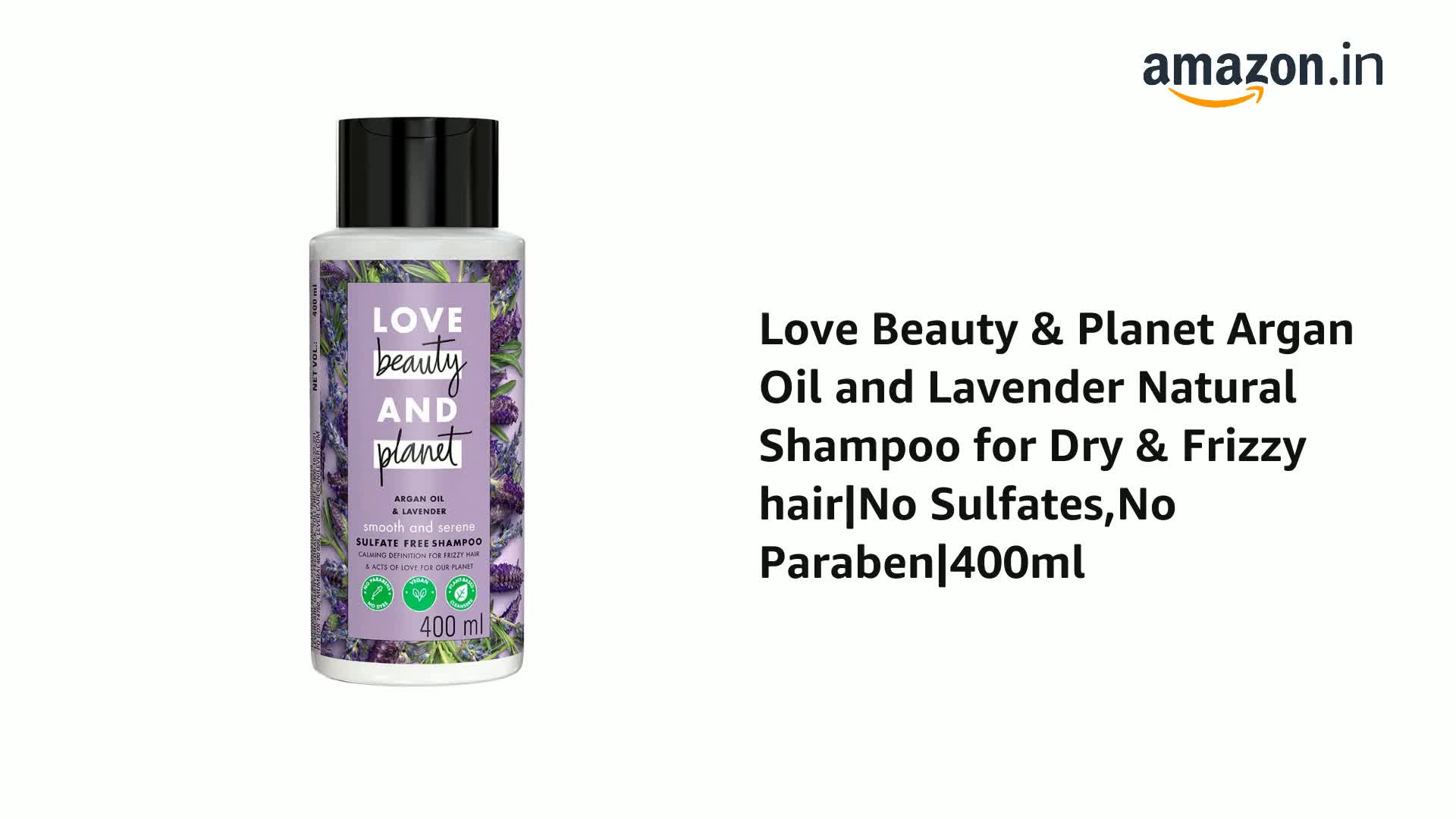 Calm your frizz for hair that's oh-so-smooth with our Smooth and Serene Shampoo. Our anti-frizz shampoo is made with plant-based cleansers and infused with 100% organic coconut oil. It delicately surrounds your hair in a fragrant cloud of heirloom French lavender|| sourced ethically from the Dromé Provencale region of France. How to use? You know it - Simply squeeze|| lather and rinse. Go easy on the tap! For brilliantly beautiful hair|| follow up with our Love Beauty and Planet Argan Oil and Lavender Smooth and Serene Conditioner. Our goal is a carbon footprint so small|| it's like we weren't even here. We|| at Love Beauty & Planet have started our journey by loading our products with natural goodness and packing it in bottles made from 100% recycled plastic. Our delicate scents are infused with natural and ethically sourced oils and extracts. All our bottles are made up of 100% recycled plastic waste and are completely recyclable. Our caps and pumps aren't made from recycled plastics yet|| but we're working on it. Our products are free from added harsh chemicals like parabens|| dyes and sulfates. Love Beauty & Planet is PETA Certified cruelty-free and vegan. Globally|| Love Beauty & Planet does not test on animals. We are committed to acts of love that make our planet cleaner|| greener and more beautiful.*OLD