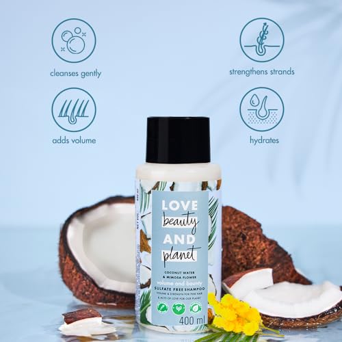 Build bounce into your hair with our volume and bounty shampoo. Our volume shampoo is made with plant based cleansers and infused with organic coconut oil. Show off lush bountiful tresses with an energizing burst of delicate mimosa flower sourced ethically from the region of khemisset in morocco. How to use? Simply squeeze lather and rinse. Go easy on the tap after shampooing follow up with our Love Beauty & Planet coconut water and mimosa flower volume and bounty conditioner. Our goal is a carbon footprint so small it's like we weren't even here. We at Love Beauty & Planet have started our journey by loading our products with natural goodness and packing it in bottles made from 100% recycled plastic. Our delicate scents are infused with natural and ethically sourced oils and extracts. All our bottles and jars are made up of 100% recycled plastic waste and are completely recyclable. Our caps and pumps arent made from recycled plastics yet but were working on it. Our products are free from ed harsh chemiclike parabens and dyes. Love Beauty & Planet is PETA Certified cruelty-free and vegan. Globally Love Beauty & Planet does not test on anim. We are committed to acts of love that make our planet cleaner greener and more beautiful.