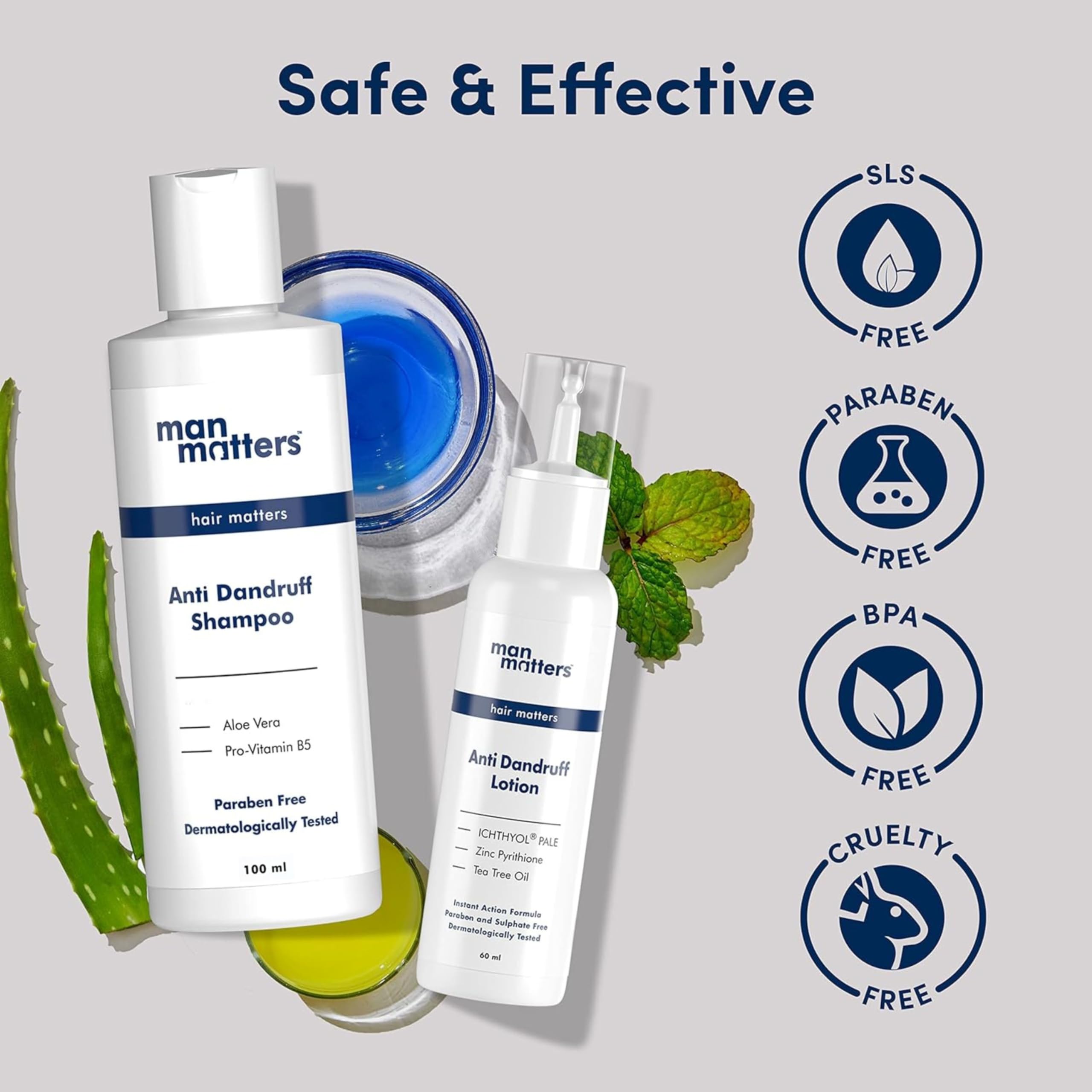 Man Matters Anti Dandruff Shampoo 100ml & Removal Lotion 60ml | Removes Heavy Dandruff Reduces Flakes & Relieves Scalp Irritation | Kit for Stage 2 Dandruff