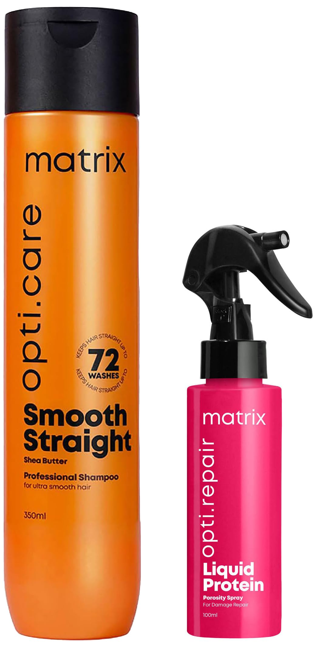 Matrix Opti.Repair Professional Porosity Spray & Matrix Opti.Care Professional Shampoo for Salon Smooth Straight Hair Combo