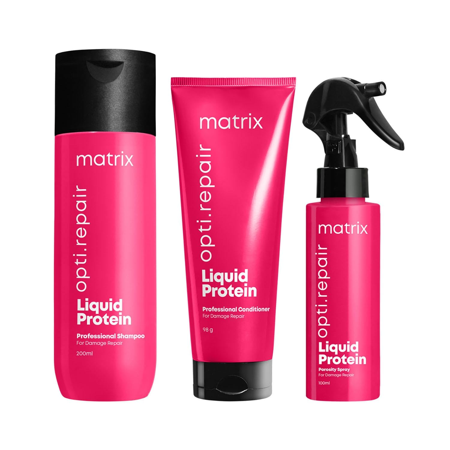 Matrix Opti.Repair Professional Shampoo + Conditioner + Spray | With Liquid Proteins | For Damaged & High Porosity Hair (200ml + 98 g + 100 ml)