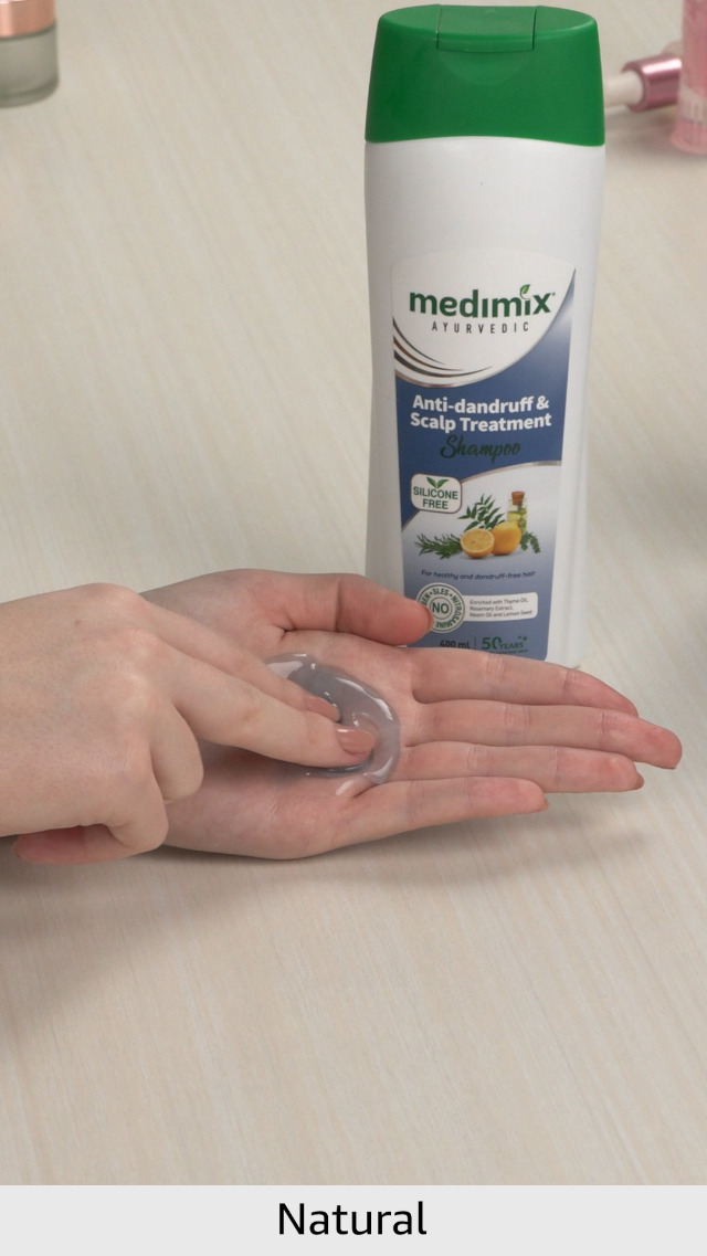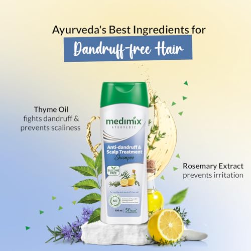 Medimix ayurvedic anti-dandruff and scalp treatment shampoo is enriched with thyme oil neem oil lemon seed and rosemary extract. The goodness of all these ingredients leaves you hair stronger thicker and dandruff free with every wash.