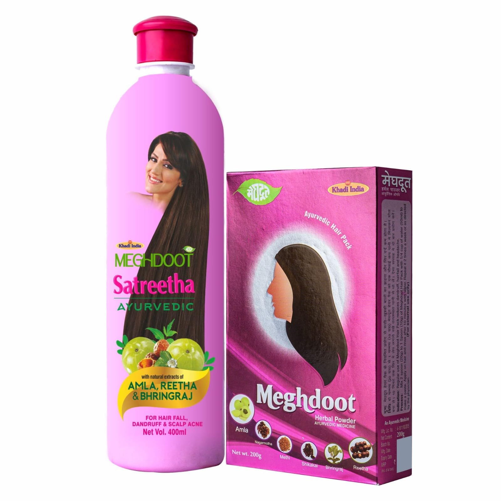Meghdoot Ayurvedic Combo Pack of Satreetha Shampoo 400ml + Herbal Powder 200grm for Complete Hair Care Dandruff Control Scalp Cleansing Solution Combo Pack of 2
