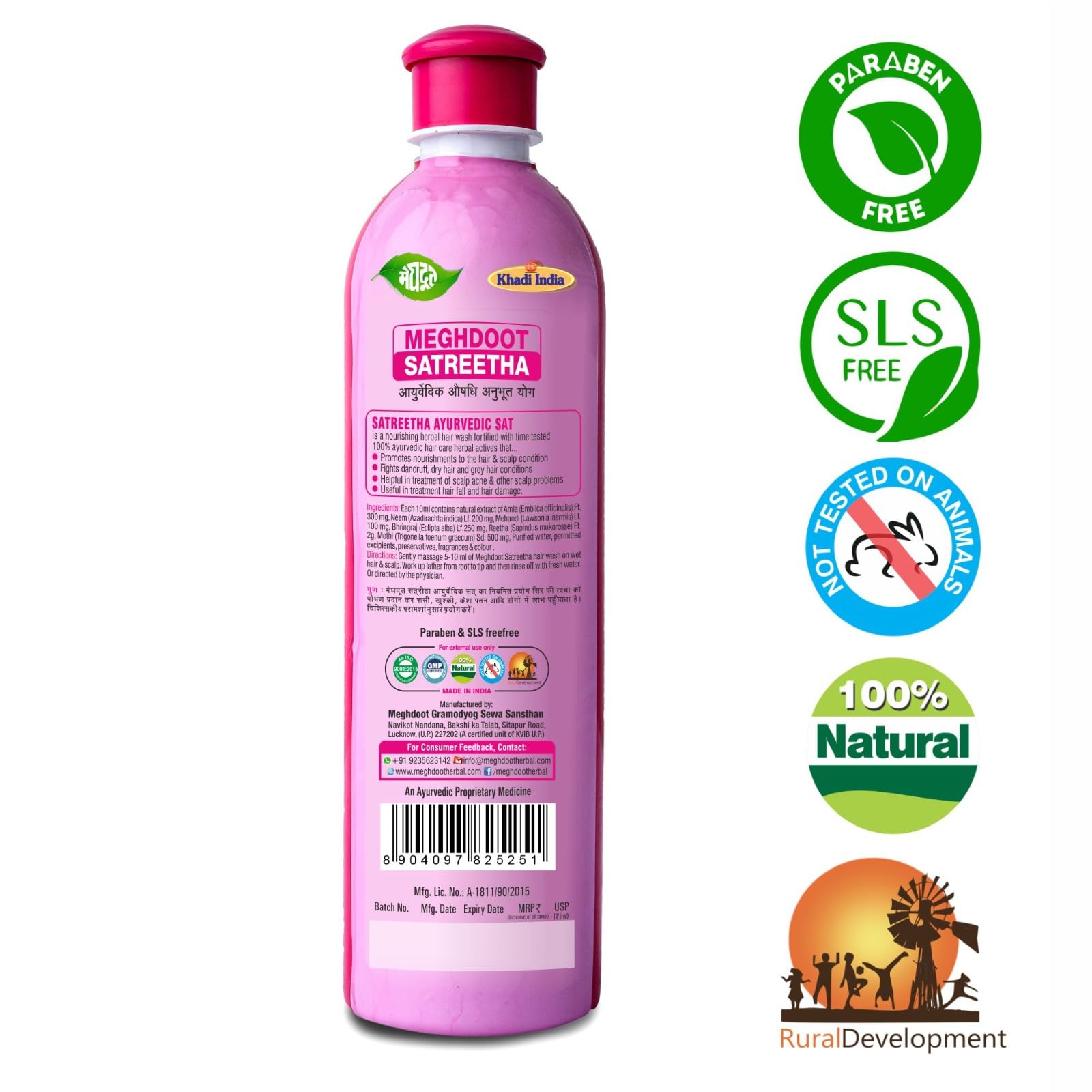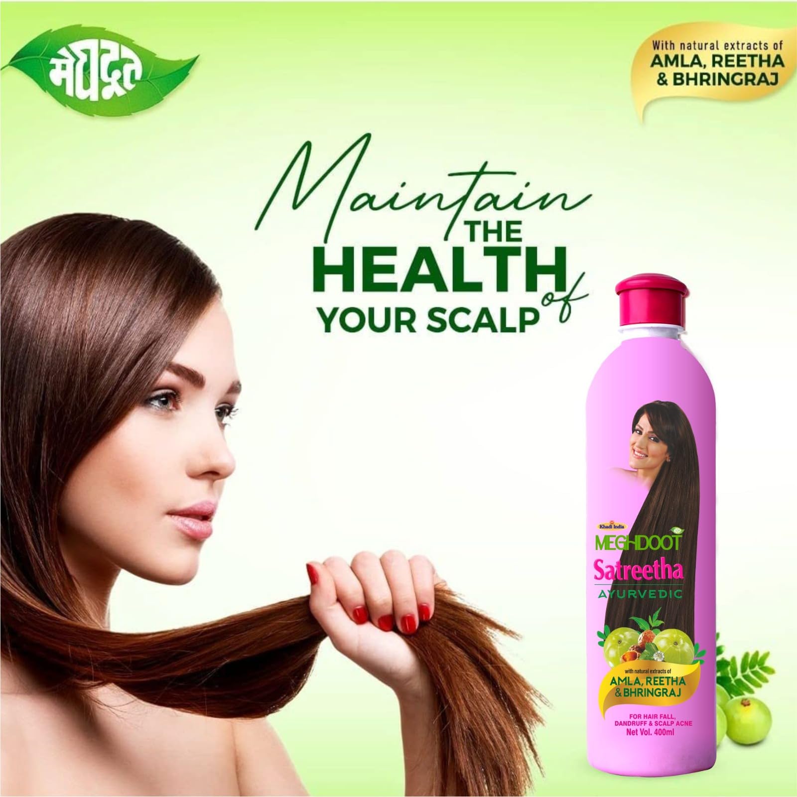 Deep Scalp Cleansing: Enriched with Satreetha (soapnut) and other herbal extracts the shampoo effectively removes dirt oil and impurities from the scalp without stripping natural oils.