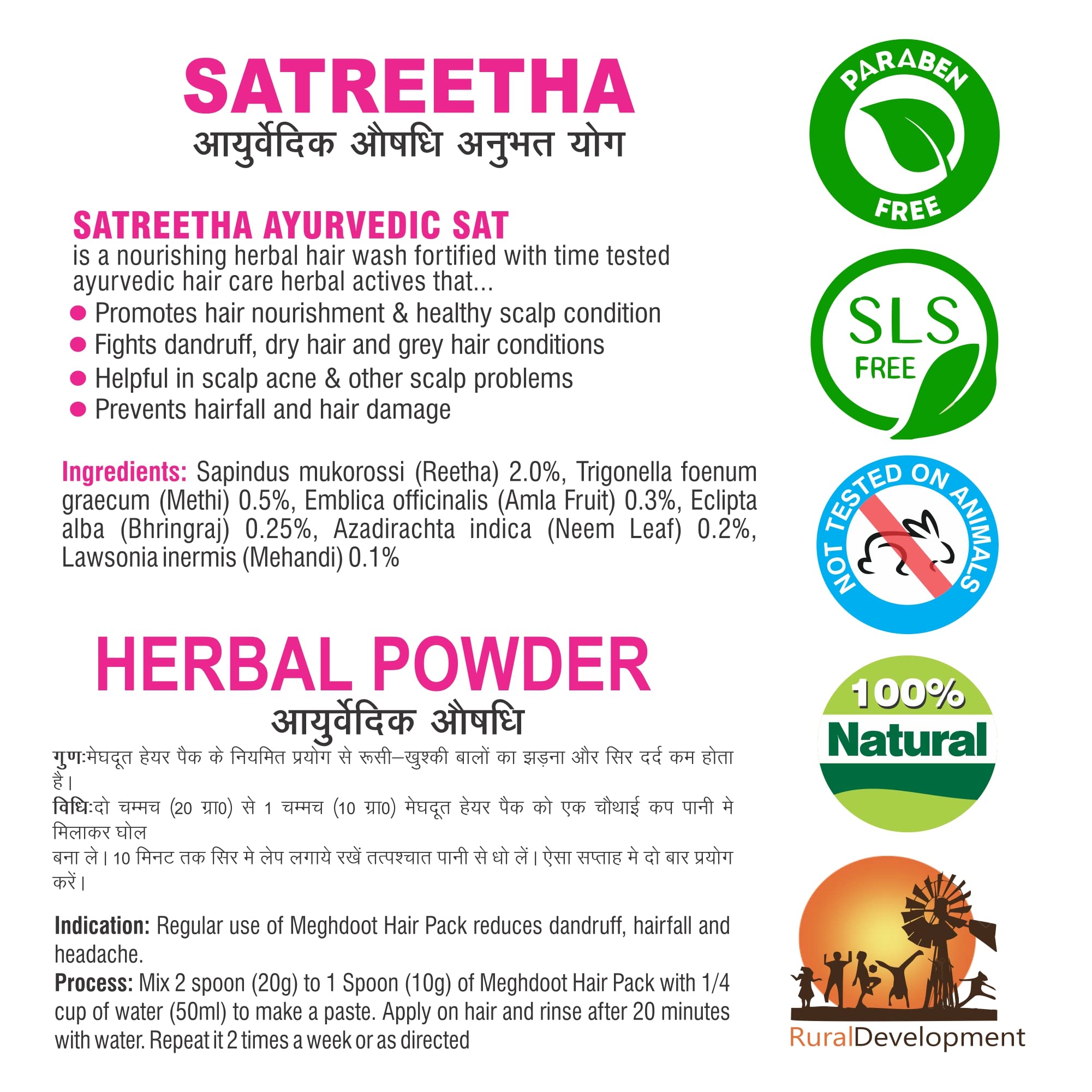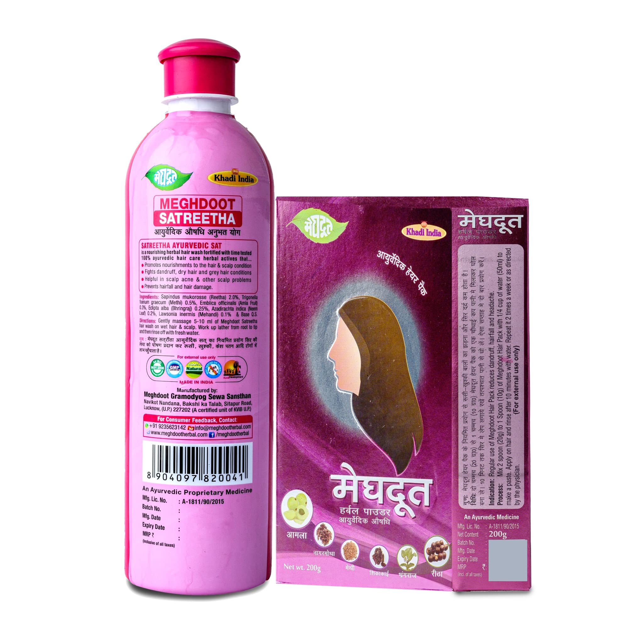 Complete Ayurvedic Hair Care Solution: This combo pack includes Meghdoot's Satreetha Shampoo and Herbal Powder both formulated with natural ingredients for holistic hair and scalp care.