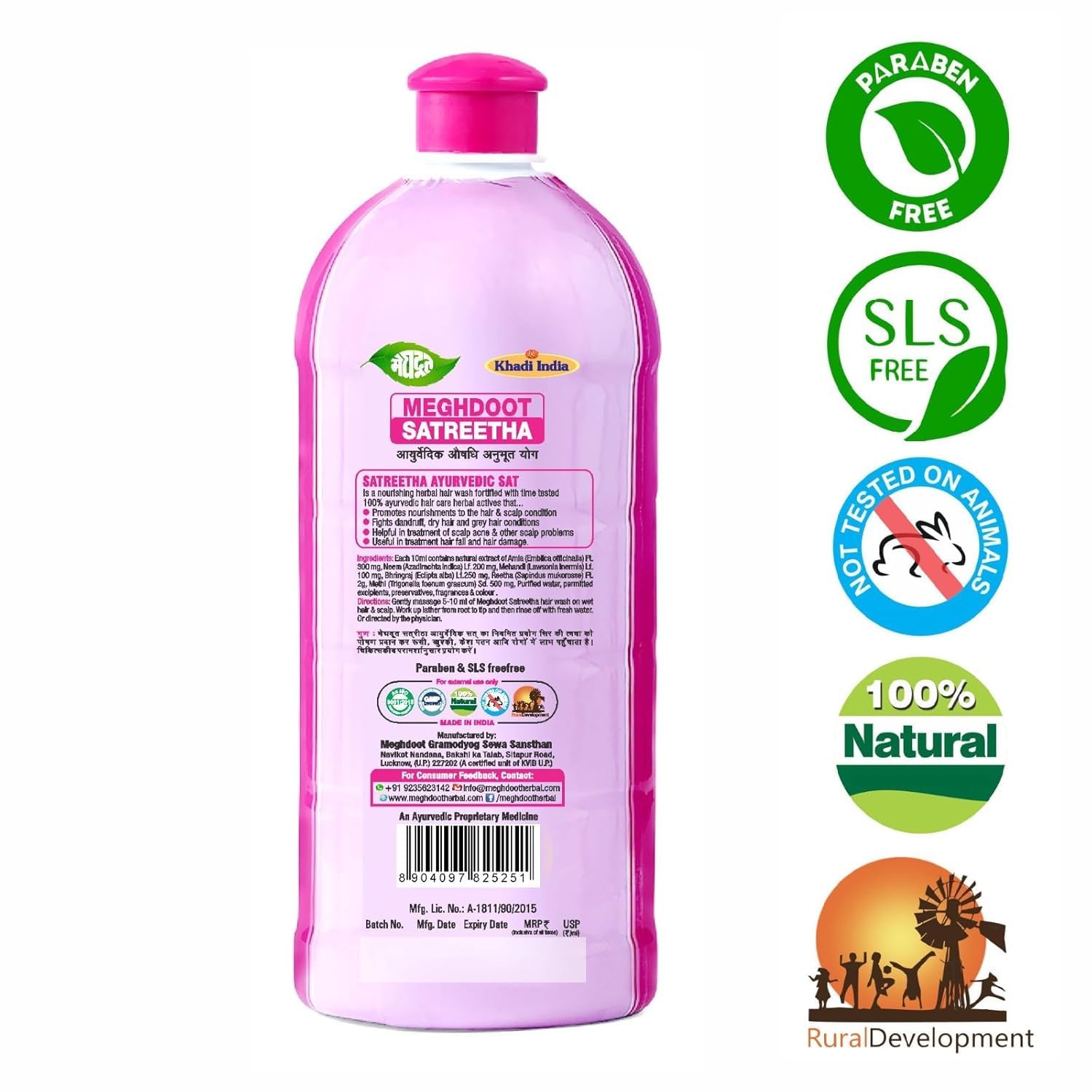 Natural Ayurvedic Formula for Hair Fall Control: Meghdoot Satreetha Shampoo is enriched with potent Ayurvedic ingredients like Amla Reetha and Bhringraj which help strengthen hair roots prevent breakage and reduce hair fall naturally.