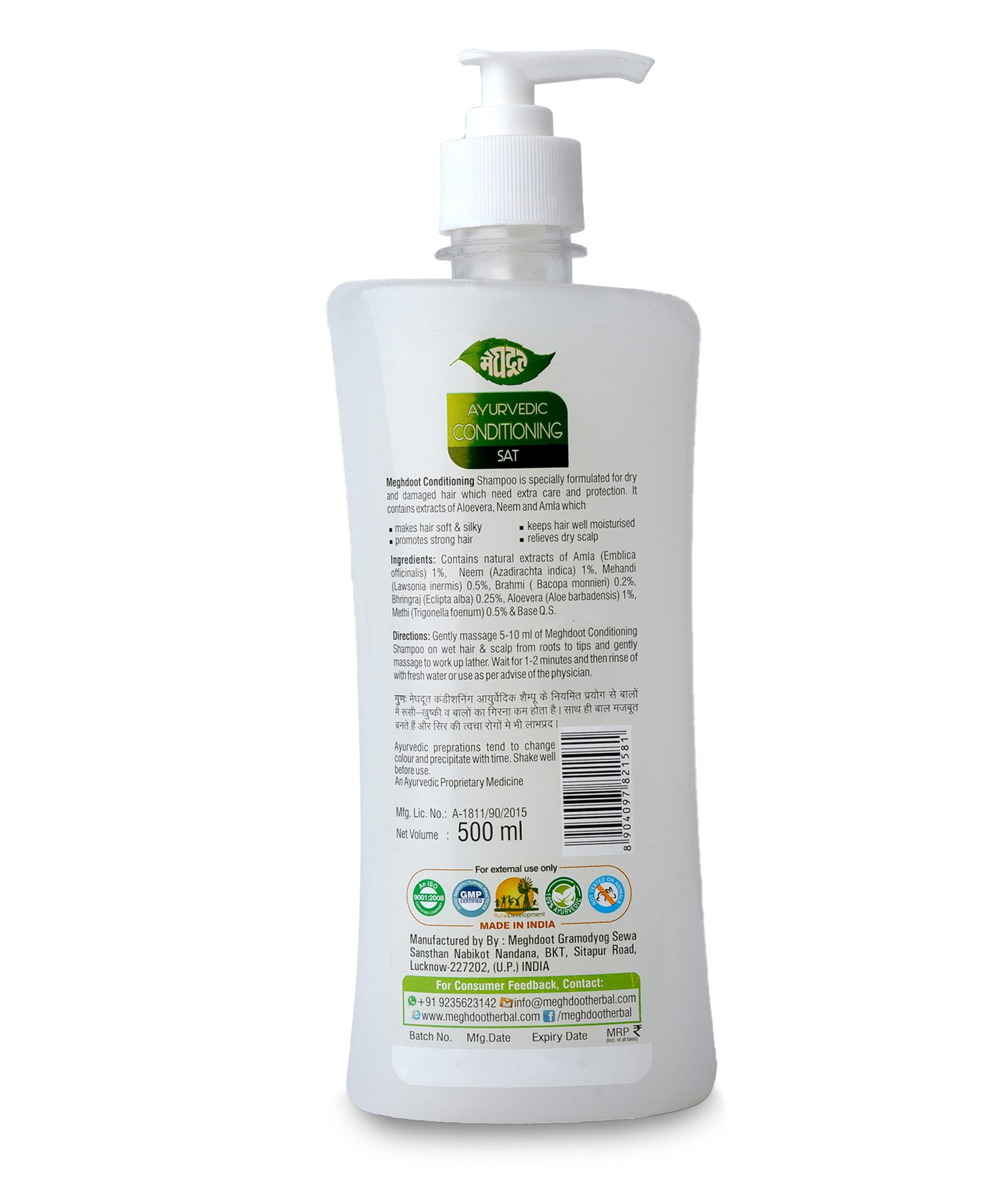 Ayurvedic conditioning shampoo with aloevera and neem: Meghdoot ayurvedic shampoo and Conditioner helps moisturize dry hair reduce dandruff and leave hair feeling soft and manageable after every wash