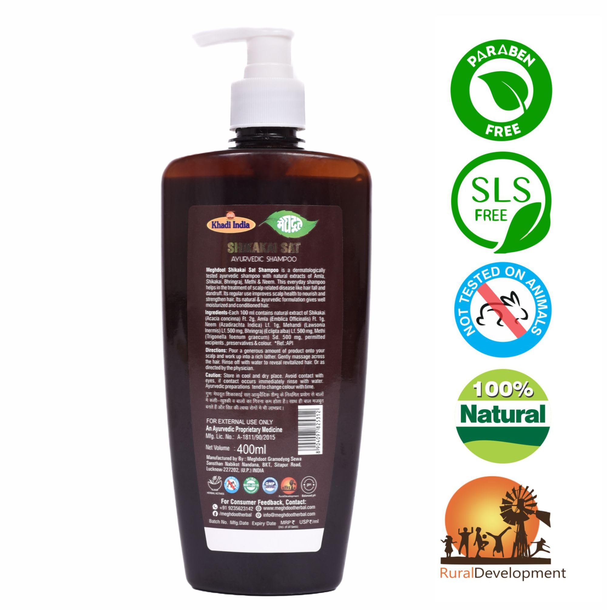 Meghdoot Ayurvedic Shikakai Shampoo Enriched With Natural Extract of Amla & Shikakai For Hair Fall Control Dandruff Control Strong & Thick Hair 400ml (Pack of 1)