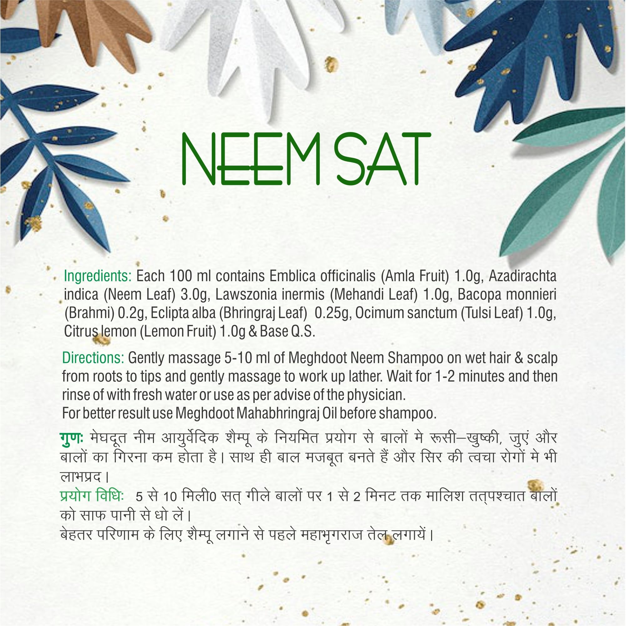 Meghdoot Neem Sat Ayurvedic Shampoo Enriched with Neem Amla and Lemon for Dandruff Lice Control Scalp Cleaning Oily Dandruff Treatment 500ml (Pack of 2)